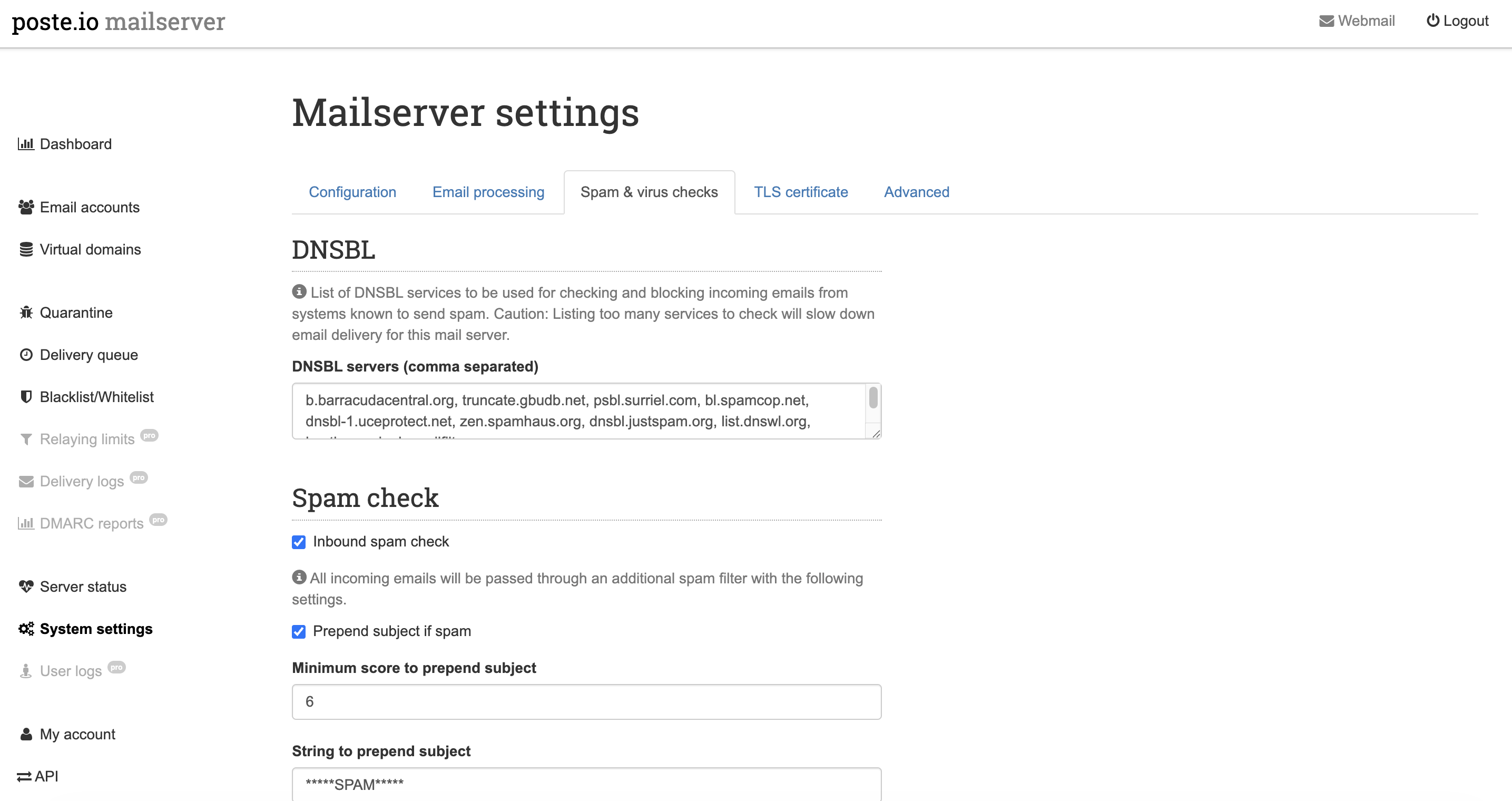 poste.io默认是开启入站病毒检查的,好像是内置的ClamAV