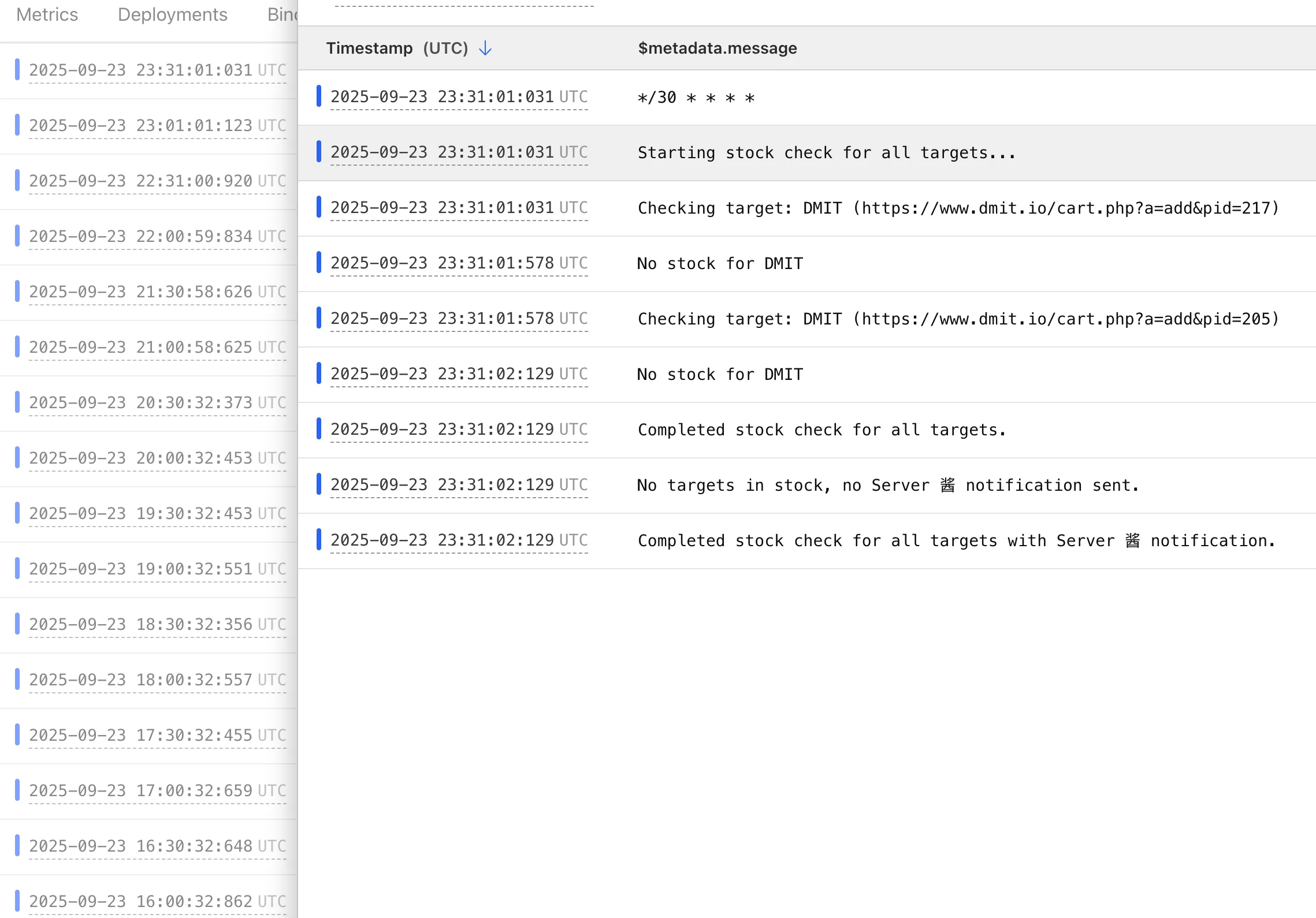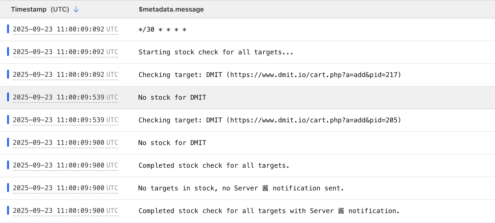 像搬瓦工的购买页面就没有限制,几分钟监控一次也没关系。DMIT 不要太频繁监控,如果你查看日志发现 403,建议创建一个新的 Worker 把时间间隔改长,然后删除旧的 Worker。