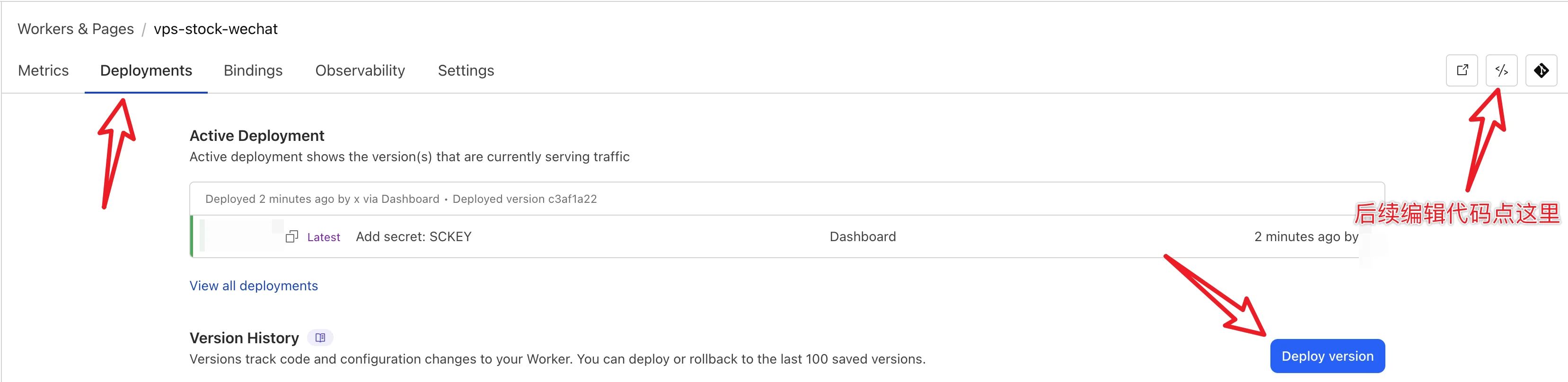 点击 Deploy Version 之后继续点击 Deploy 即可部署修改后的版本。