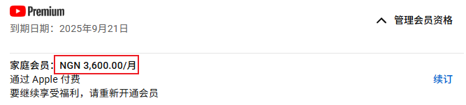 变更方法:过期后重新订阅即可,YouTube 会员归属地会随着你支付时的币种变更。