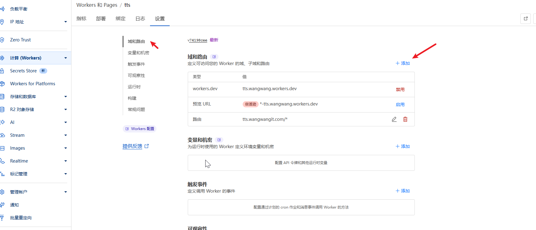 - 在Cloudflare控制台中找到你的Worker