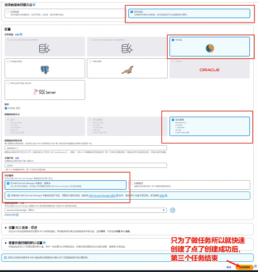 任务三 创建数据库 (根据使用情况选择删不删,可以后期再次创建)此任务时间长