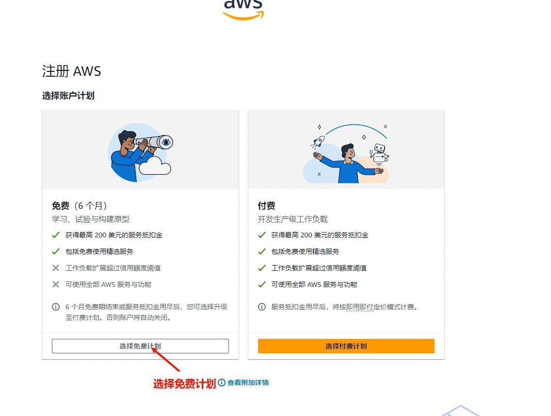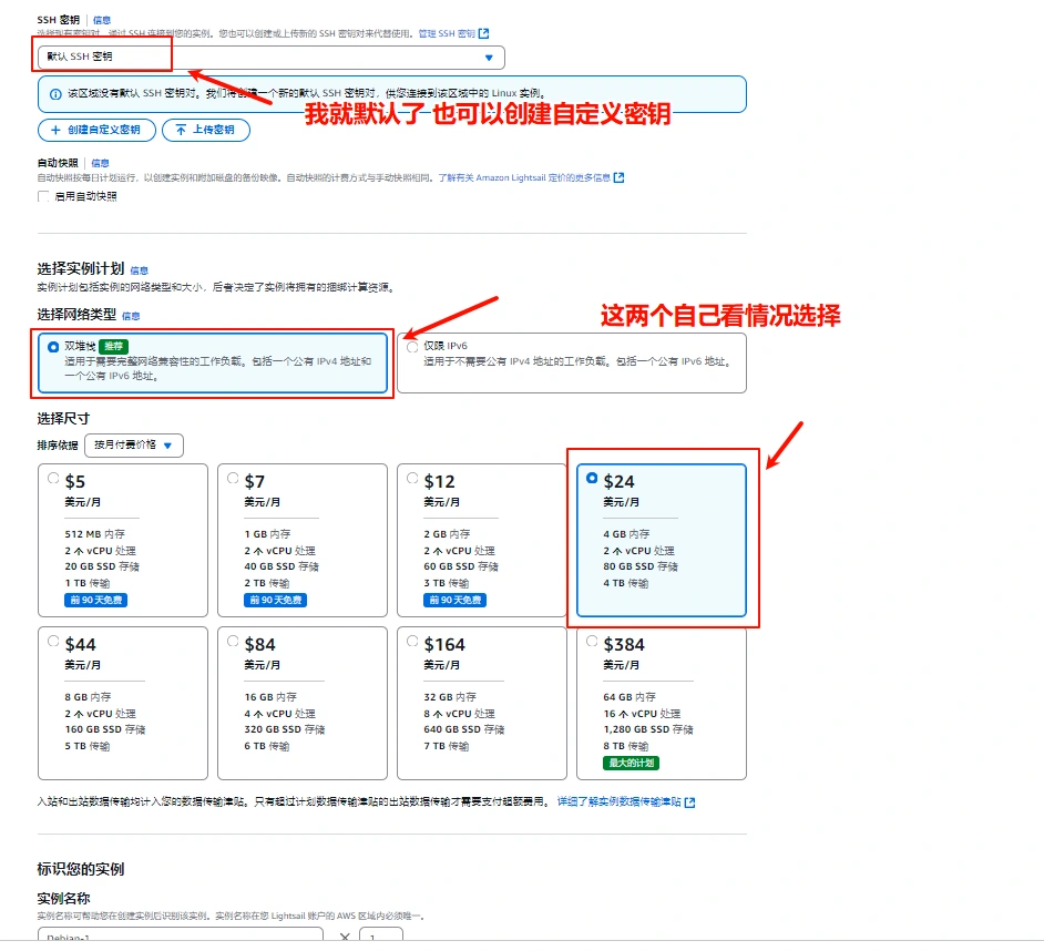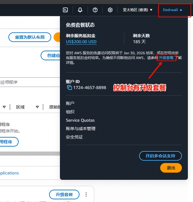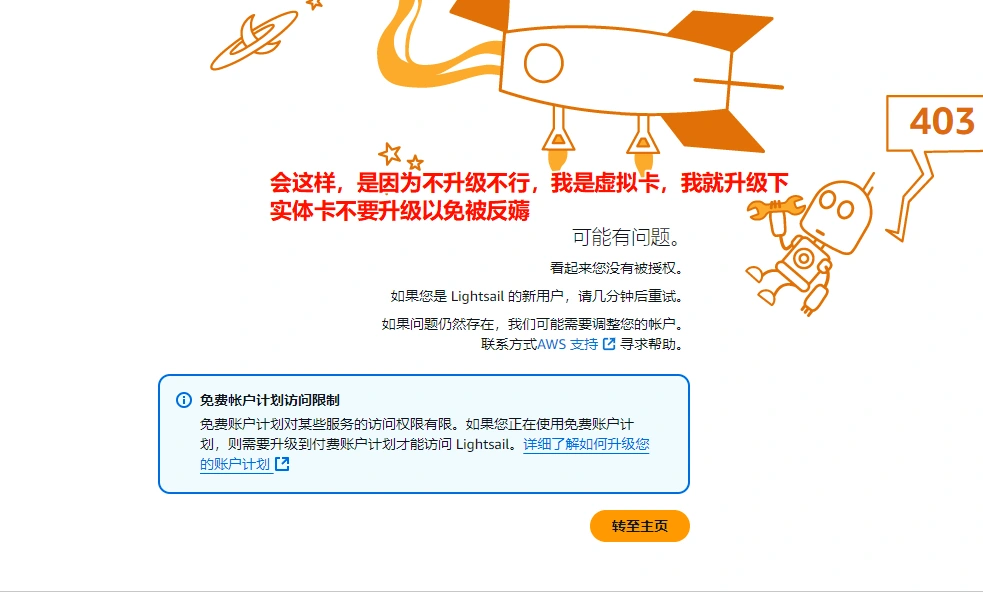 **开启Lightsail(光帆)**要升级套餐 (实体卡要考虑好要不要开,小心被反撸)