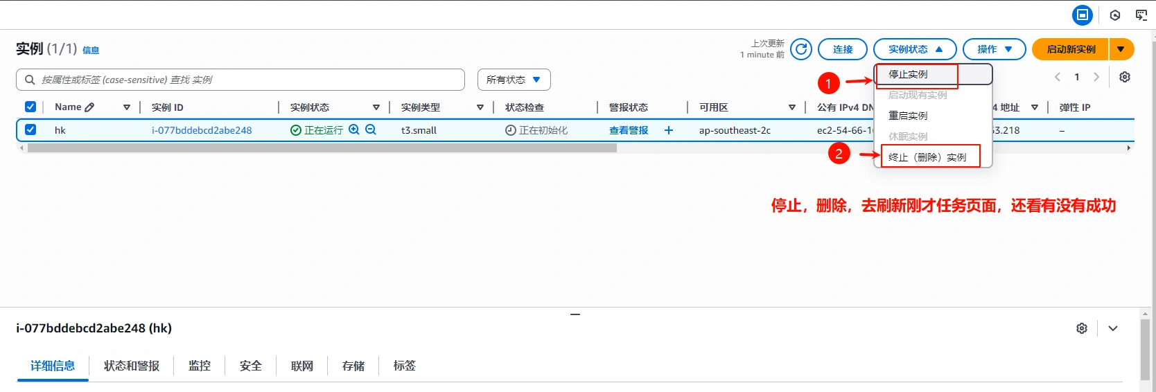 任务一 创建EC2实例并删除