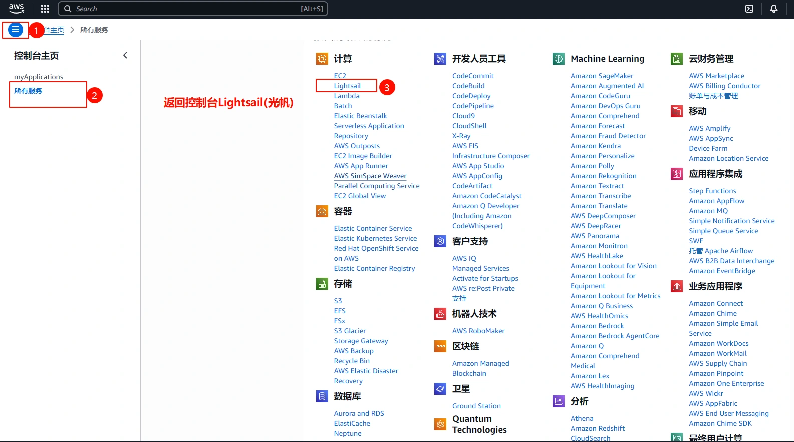 4.开启Lightsail(光帆)