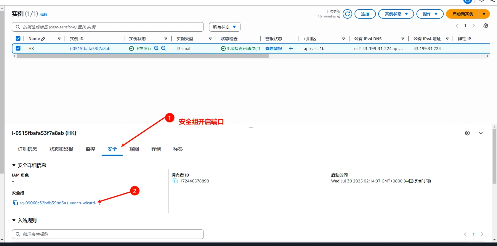 开启EC2