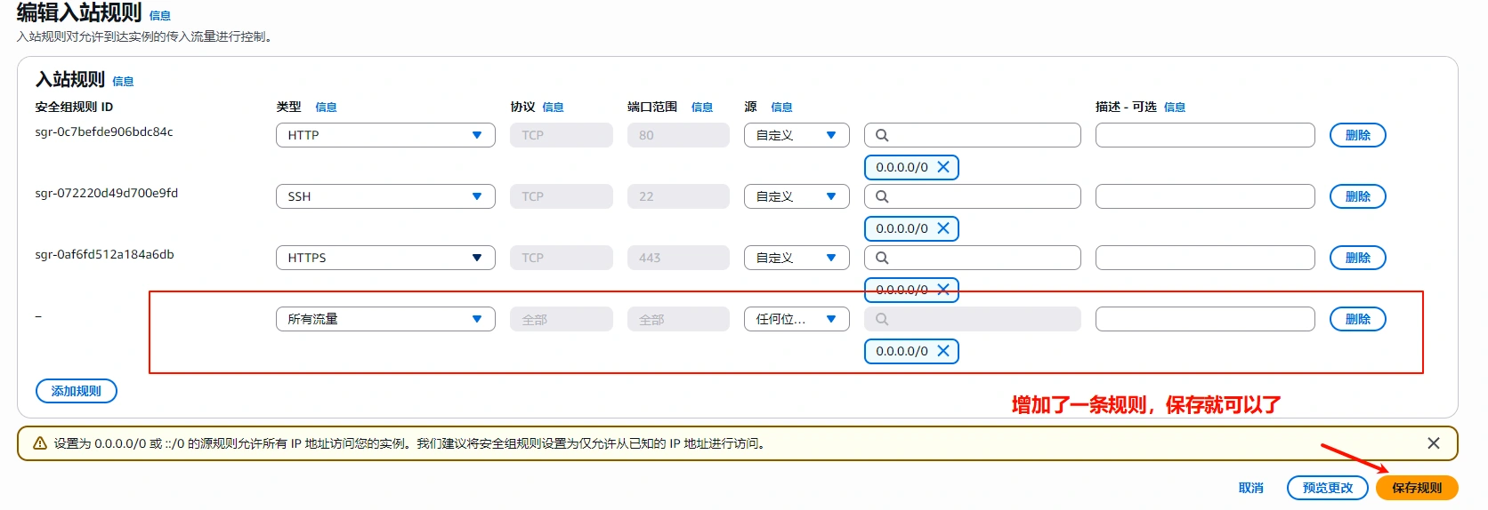 开启端口,增加规则(虽然能连接了,可是端口没有开启,搭建什么都不会通)