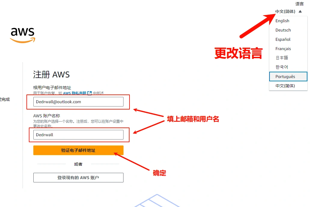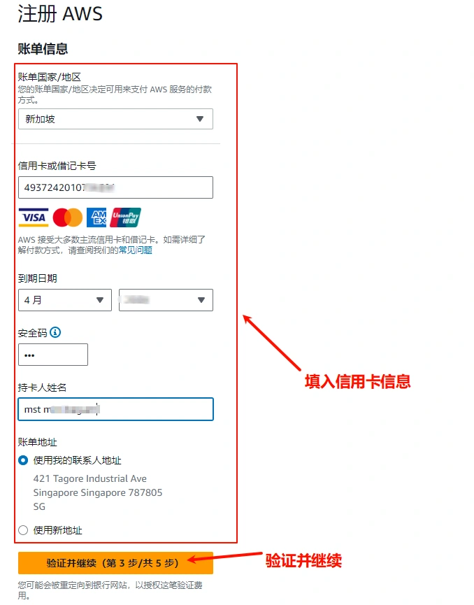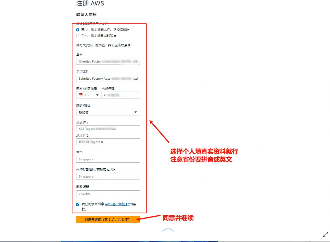 AWS注册地址网上找(因为注册跟卡头、手机号走,自己找)