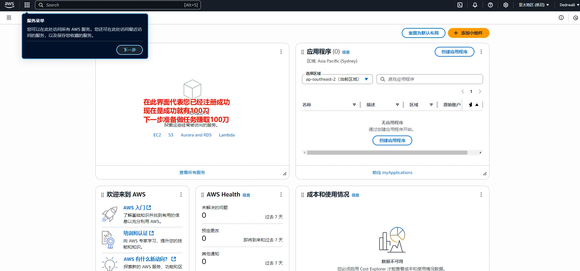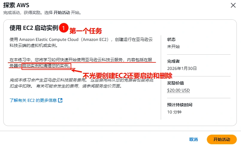 AWS更改了规则,做任务领100刀,出了一个小教程.
