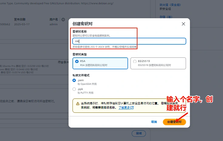 下图是密钥创建