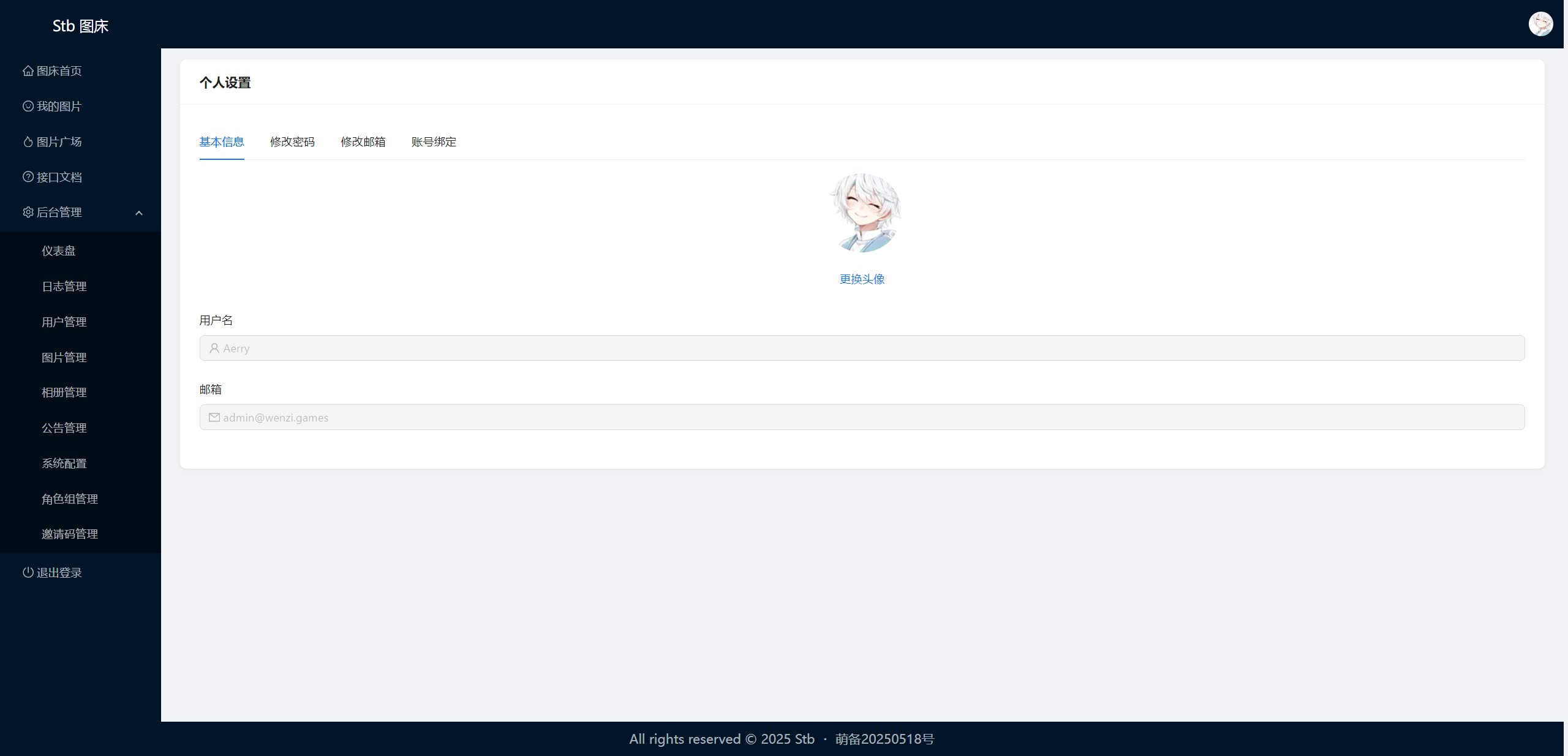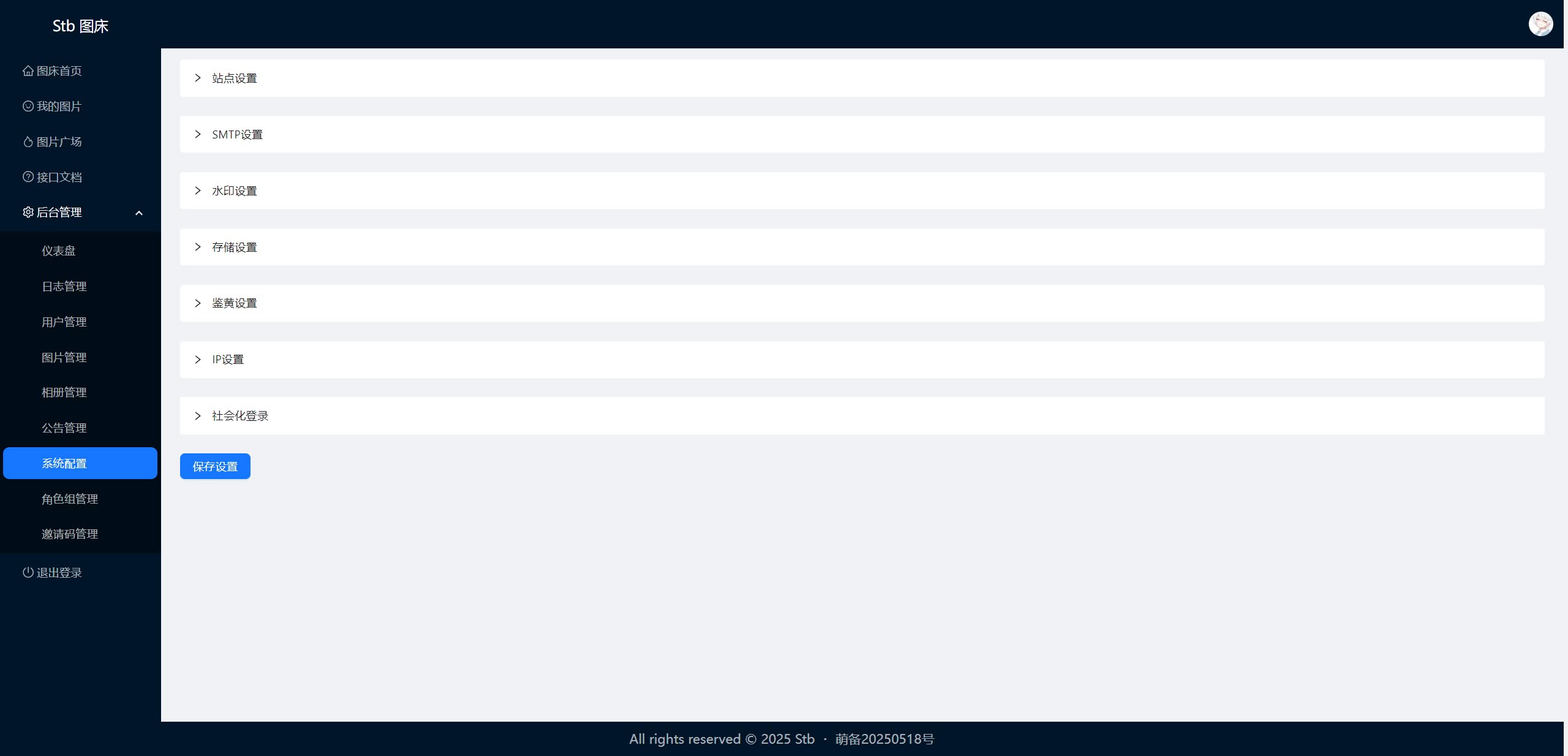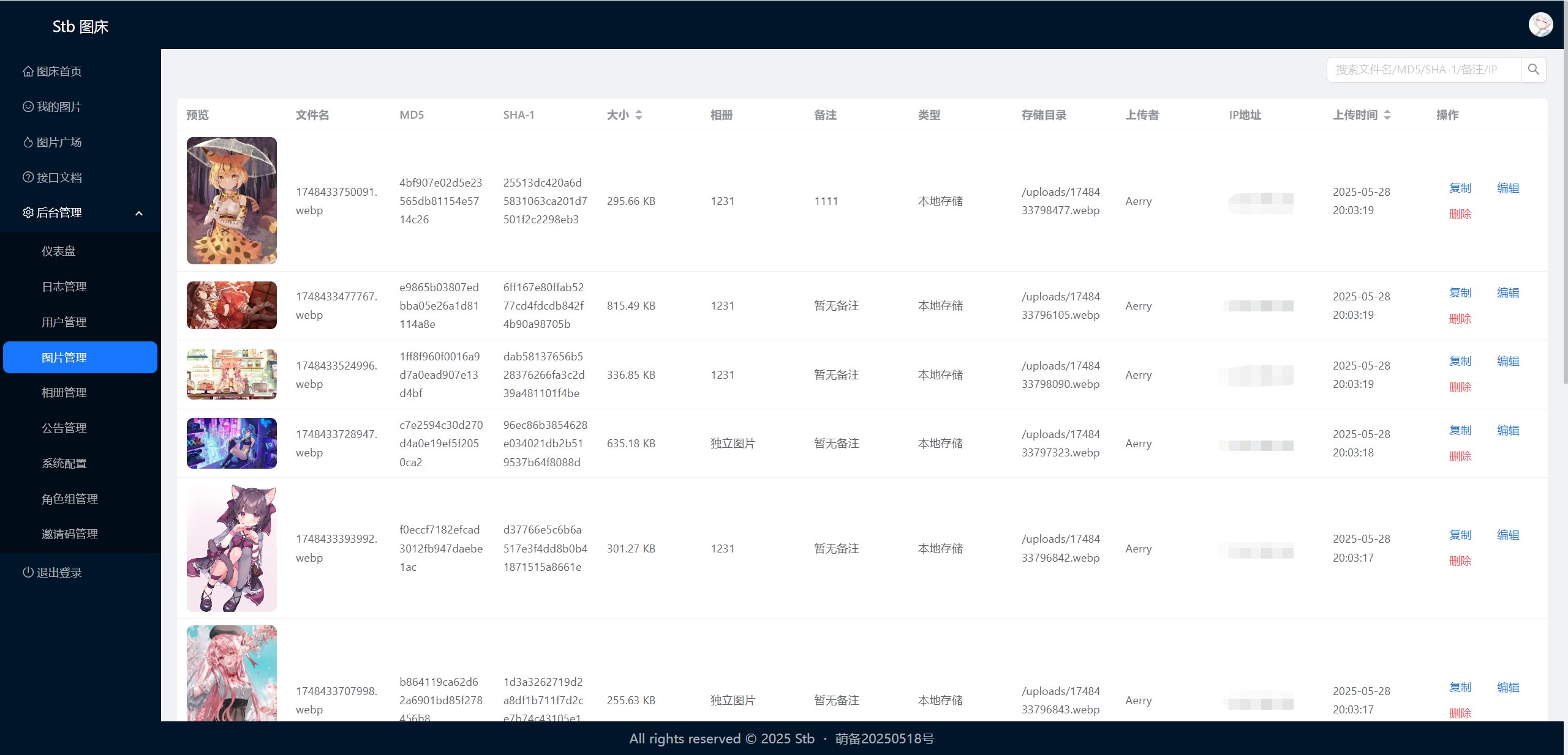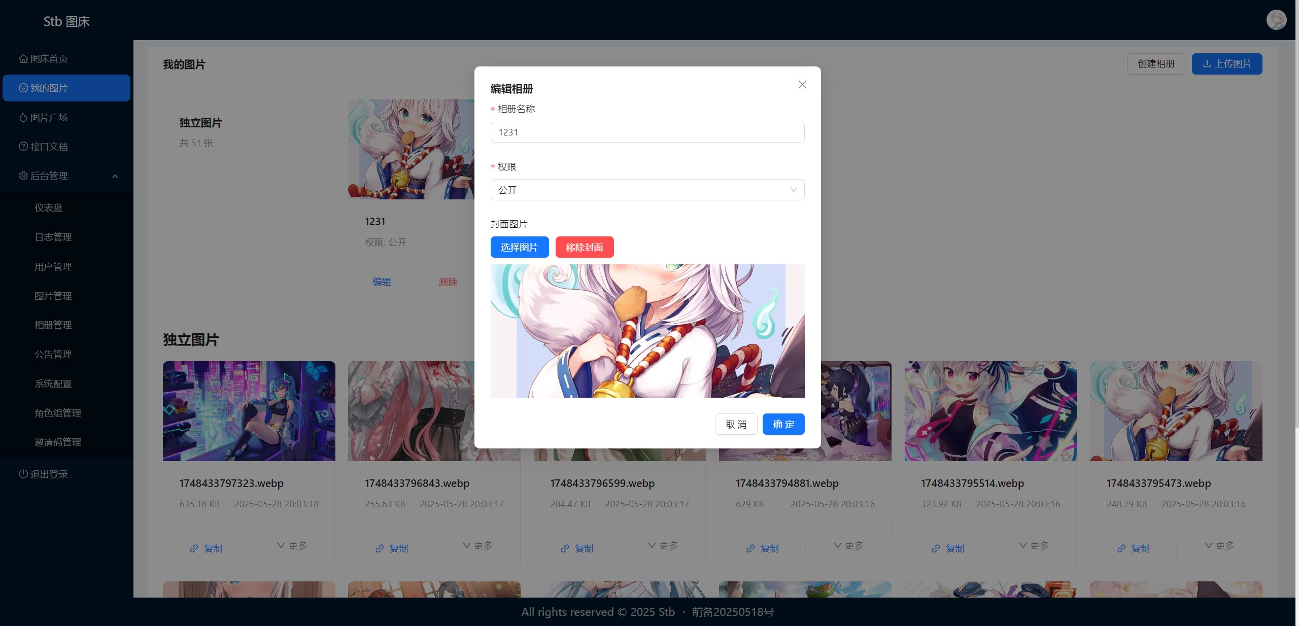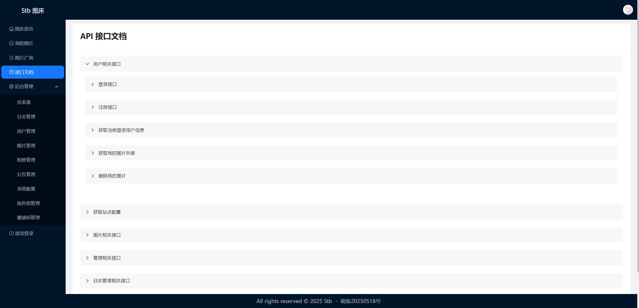 - [x] 支持通过接口上传、管理图片、管理全站
