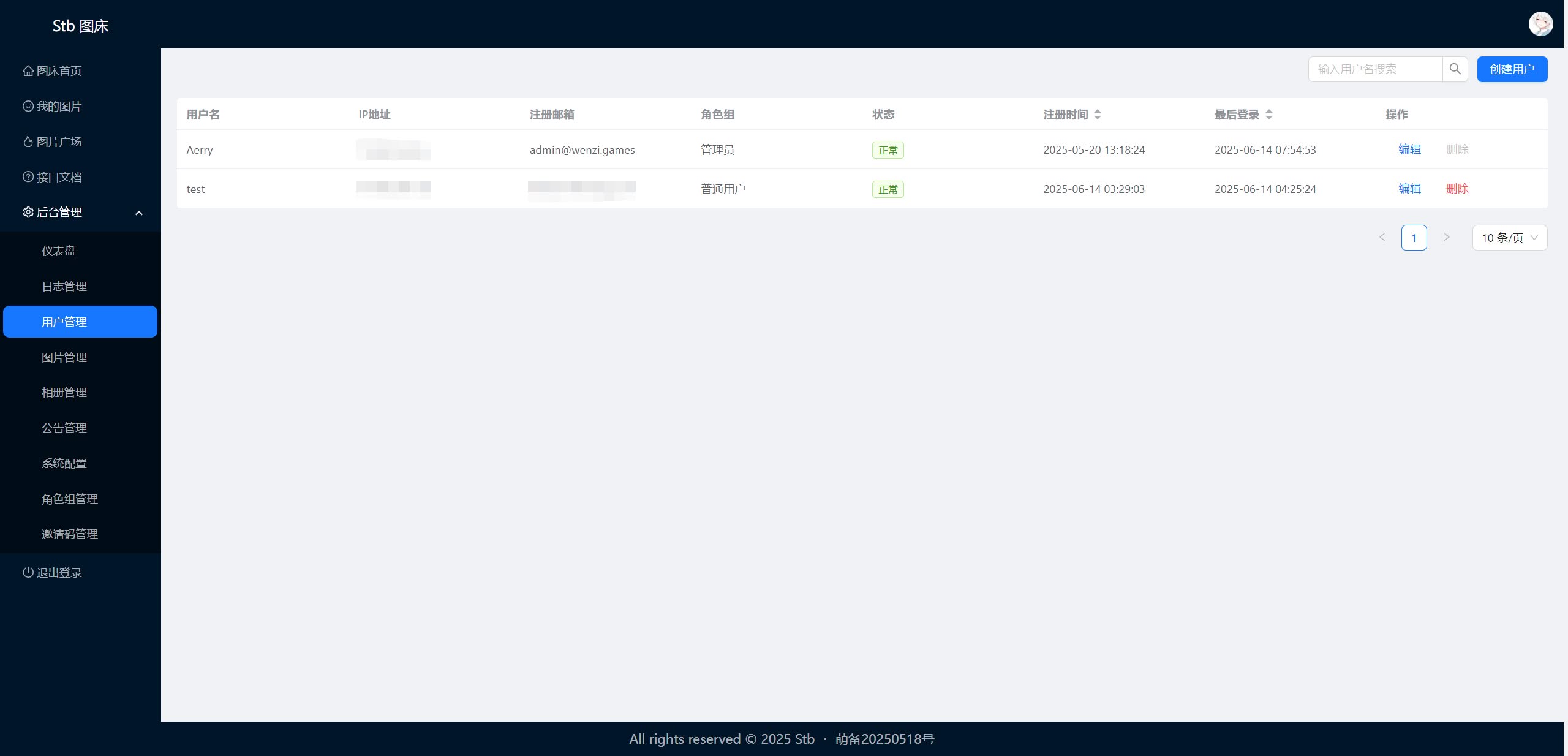 管理员账号默认为注册后的第一个账号