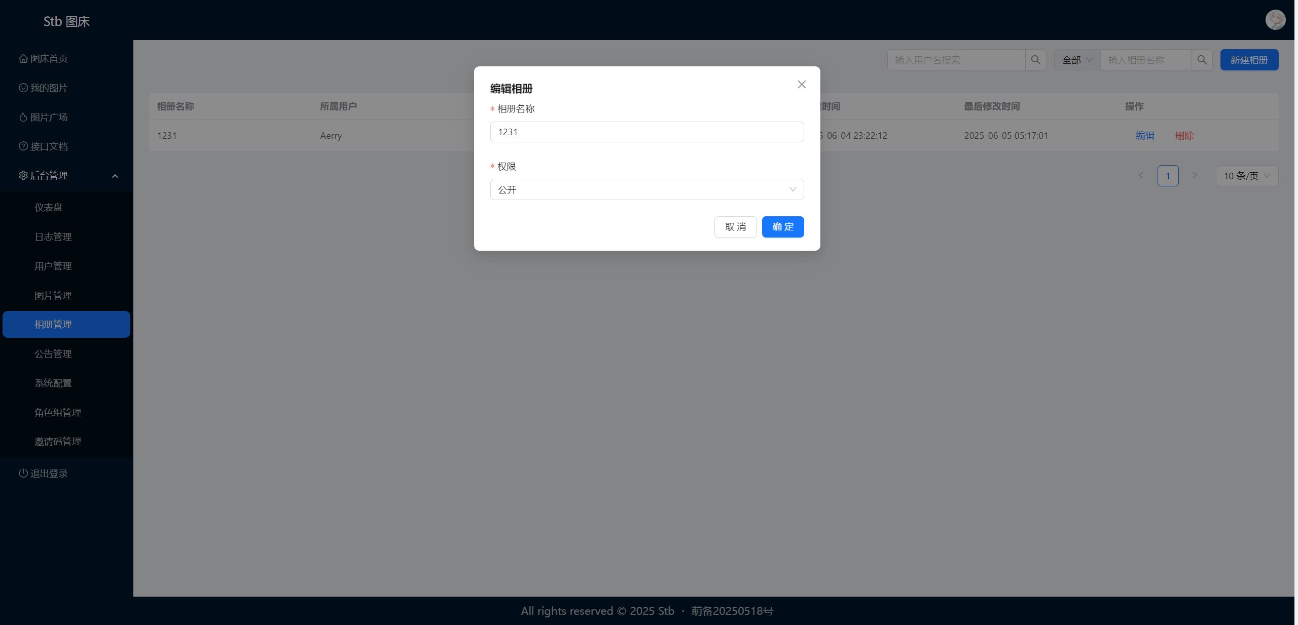 - [x] 支持管理、创建、修改、删除相册