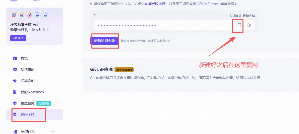 访问地址:https://www.modelscope.cn/my/myaccesstoken