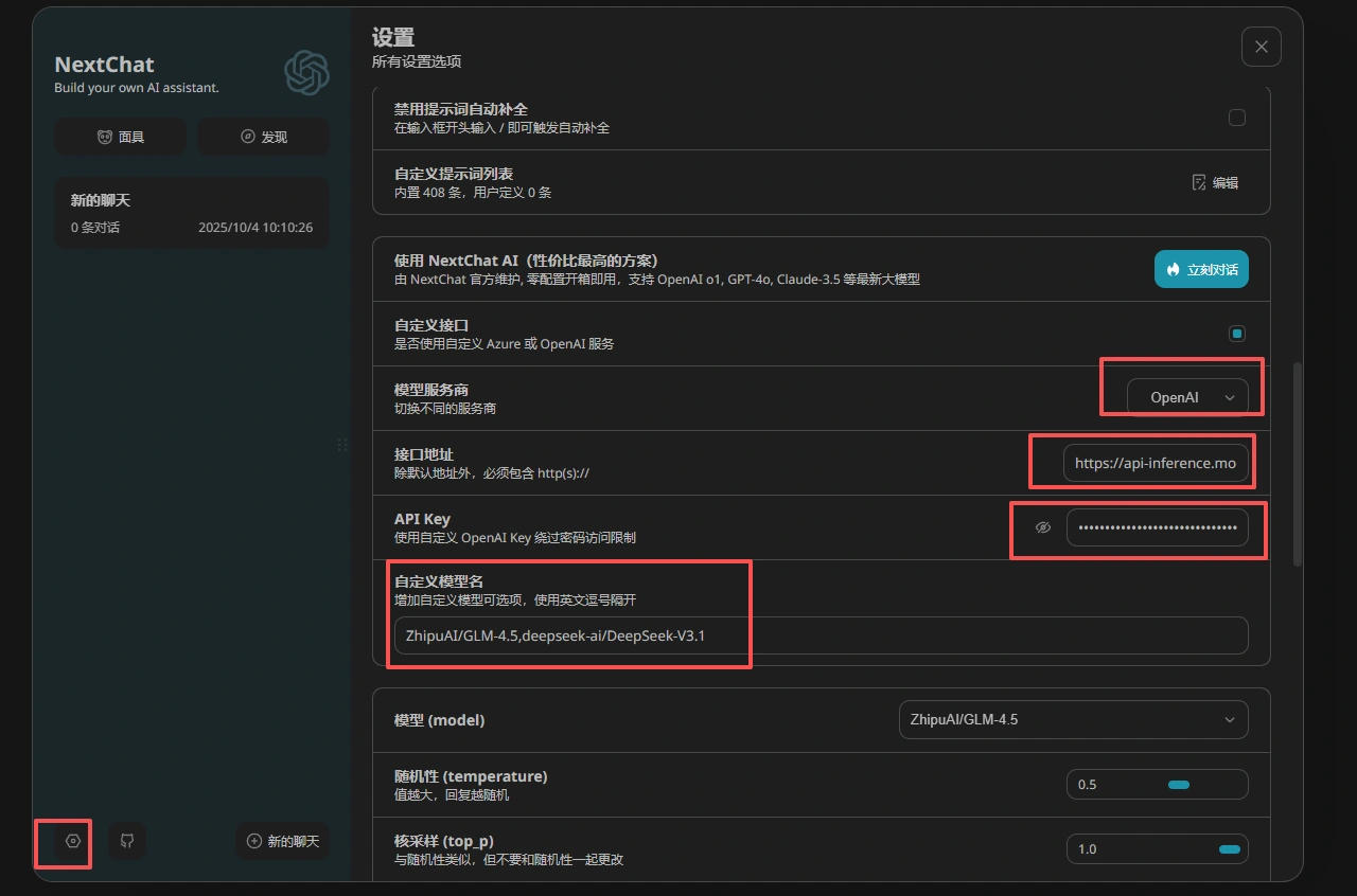 自定义模型填ZhipuAI/GLM-4.6,deepseek-ai/DeepSeek-V3.1
