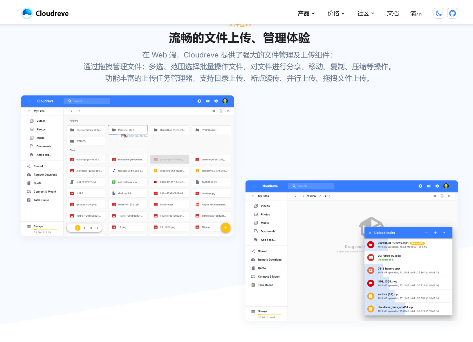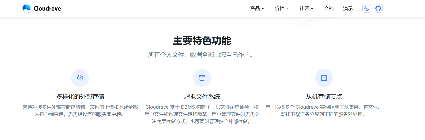 先来看看官方是怎么宣传的:Cloudreve 可以让您快速搭建起公私兼备的网盘系统。Cloudreve 在底层支持不同的云存储平台,用户在实际使用时 无须关心物理存储方式。你可以使用 Cloudreve 搭建个人用网盘、文件分享系统,亦或是针对大小团体的公有云系统。