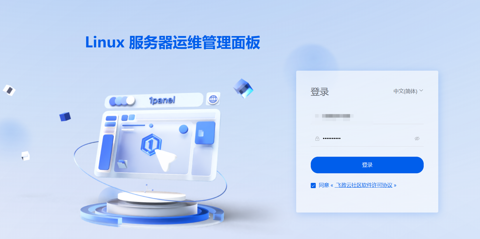 访问您的IP加设置的端口号,输入账号密码后登录后台