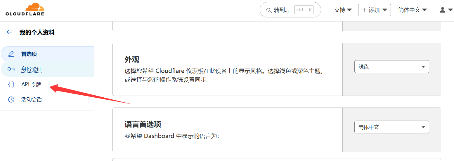 DNS账户需要根据您的域名服务商,打开对应控制页面,我以CF举例,打开如下网址并登录