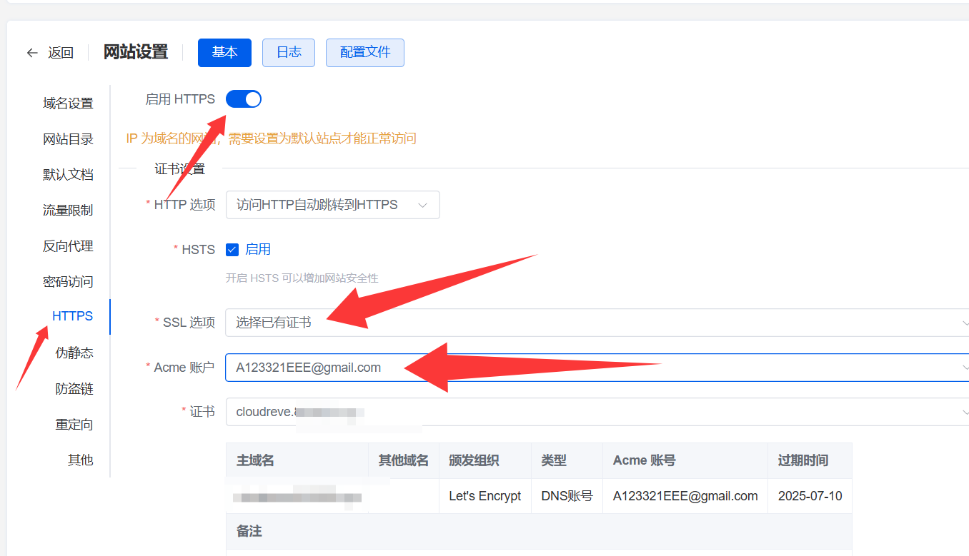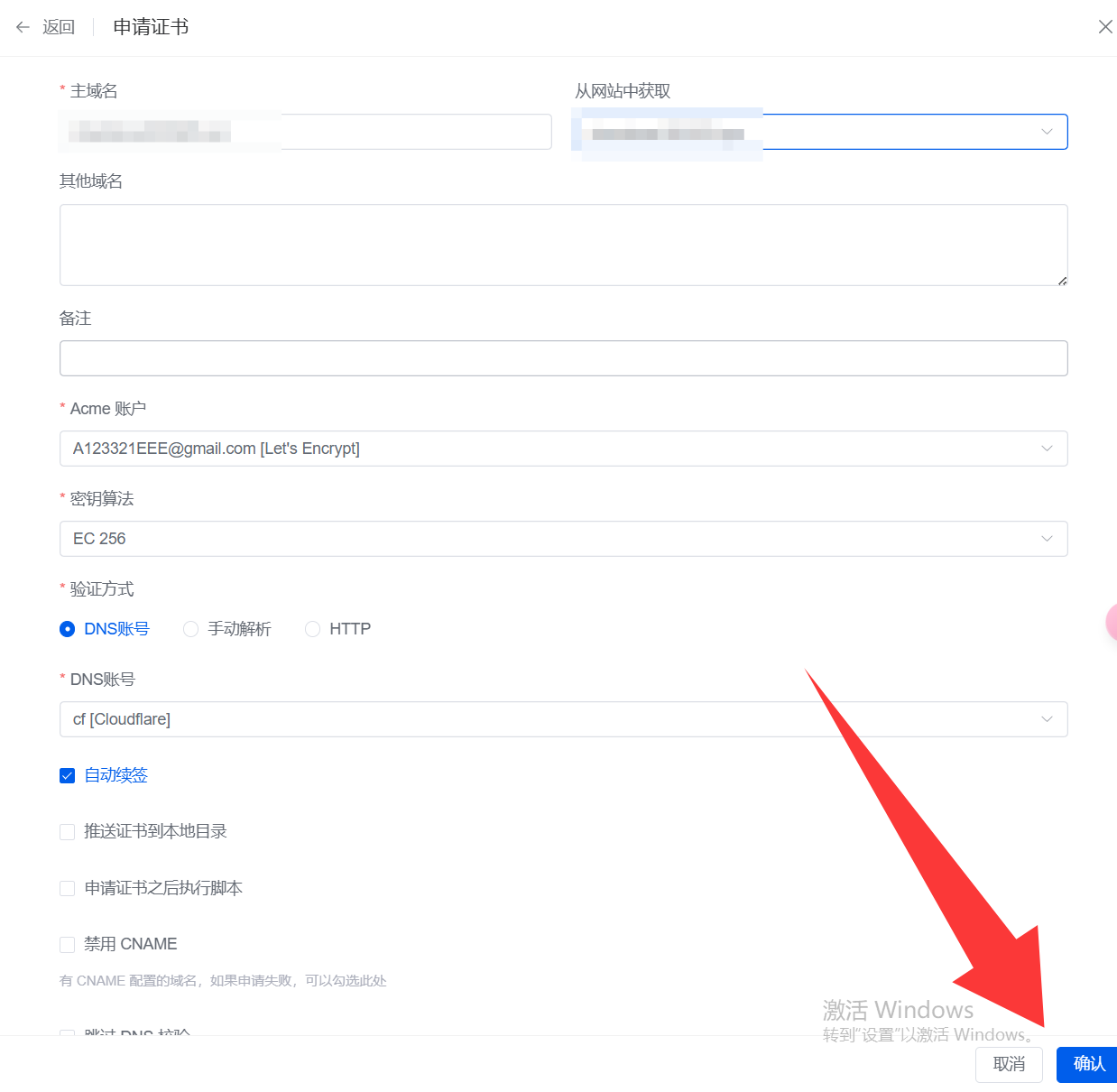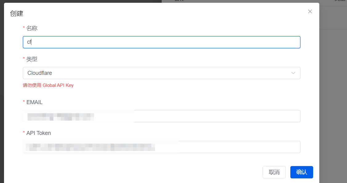 复制刚刚生成的API令牌,填入DNS账户处(邮箱为CF账户邮箱)