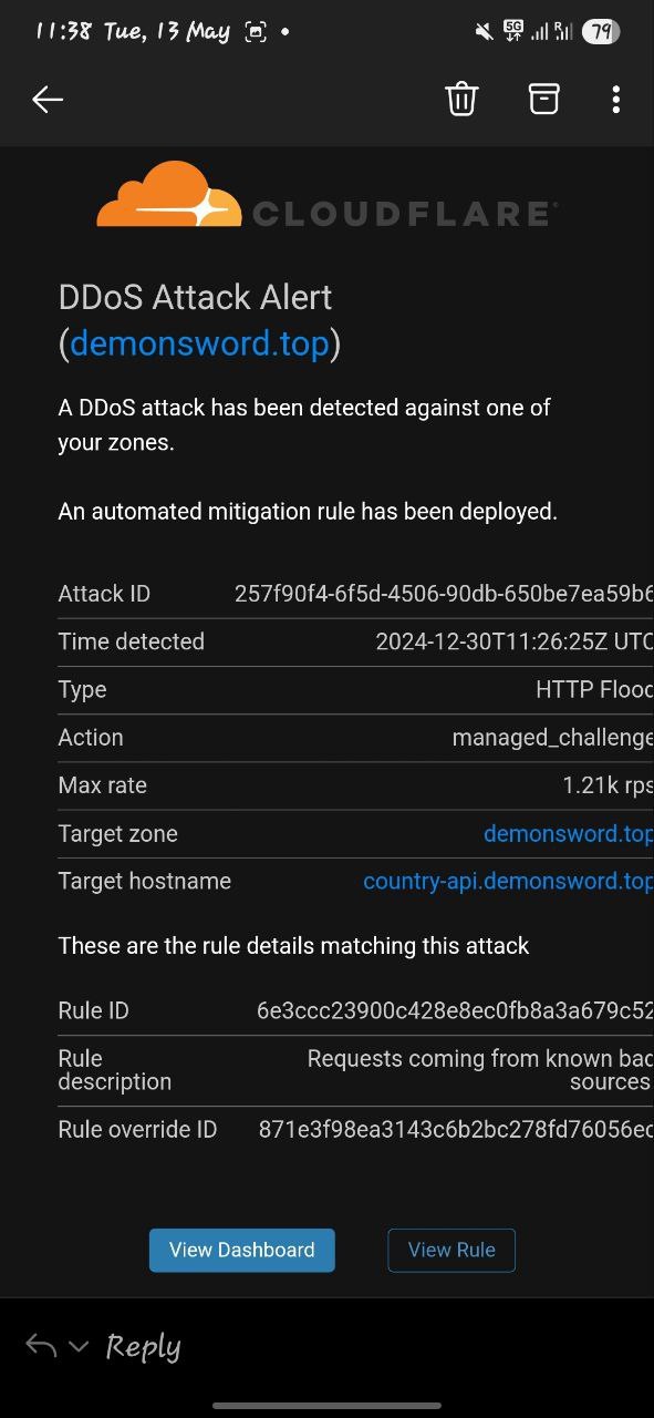 这玩意,对于 Cloudflare 套餐是 Free,只能说有用但不多,因为很多规则都是只提供给 Pro, Buisness 等等的付费套餐。而且,这个玩意在 rps (rate per second) 小于 600 的情况下,是很难被触发出来的,小于600能被触发出来,就是这个工具已经是烂大街了。而 Free 的用户,如果当你收到这个 email 的时候,大概率你的站已经飞了,因为已经漏了很多请求到源了