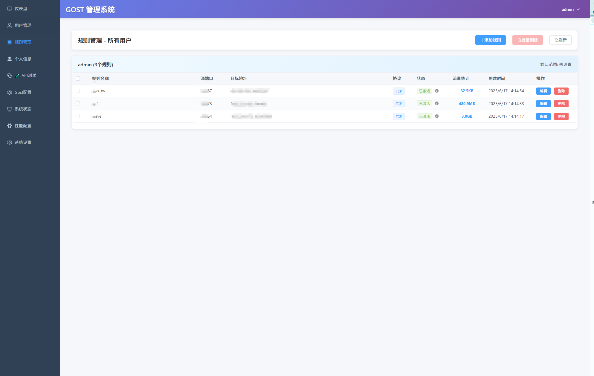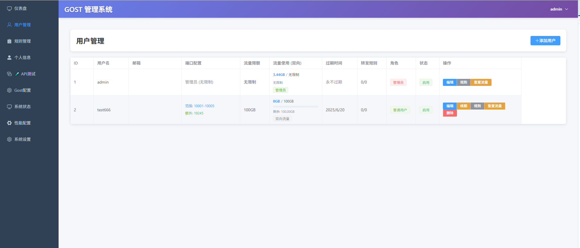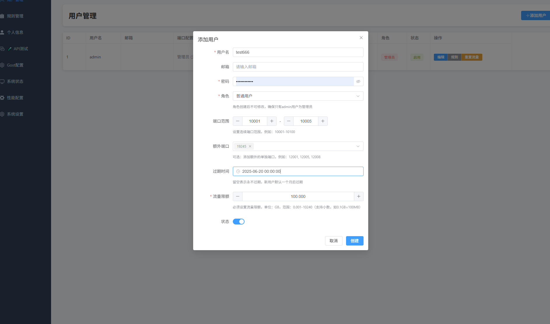 一个现代化的Web界面GOST代理服务器管理平台,提供直观的用户界面来管理和监控GOST代理服务。