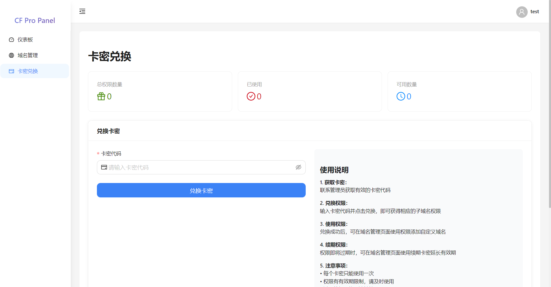 总而言之,这是一个基于 React Node.js SQLite 的 Cloudflare 合租面板,支持自定义主机名管理和卡密系统,由于实在缺乏对接易支付相关知识,我做成了卡密的形式,通过卡密进行额度的创建和续期(所以谁来给我嫖个卡密啊)
