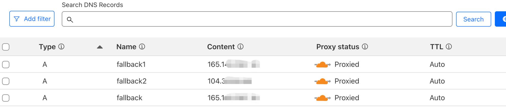 注意fallback记录可以是A也可以是CNAME,但CNAME那个域名如果是解析在cf上的就不能开启小黄云,因为开了小黄云相当于cf回源到自己的节点而不是你的小鸡。我就在这里走了些弯路,感谢@酒神大大指点https://www.nodeseek.comhttp://127.0.0.1:5001/post-357105-1