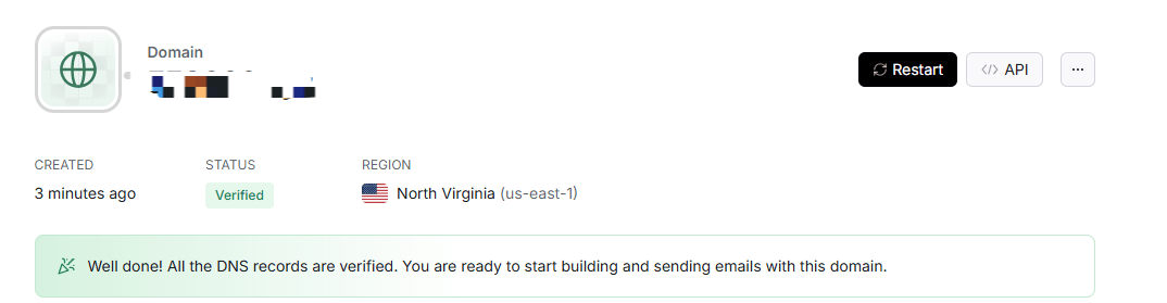 等待几分钟,刷新 Resend 页面,出现绿色