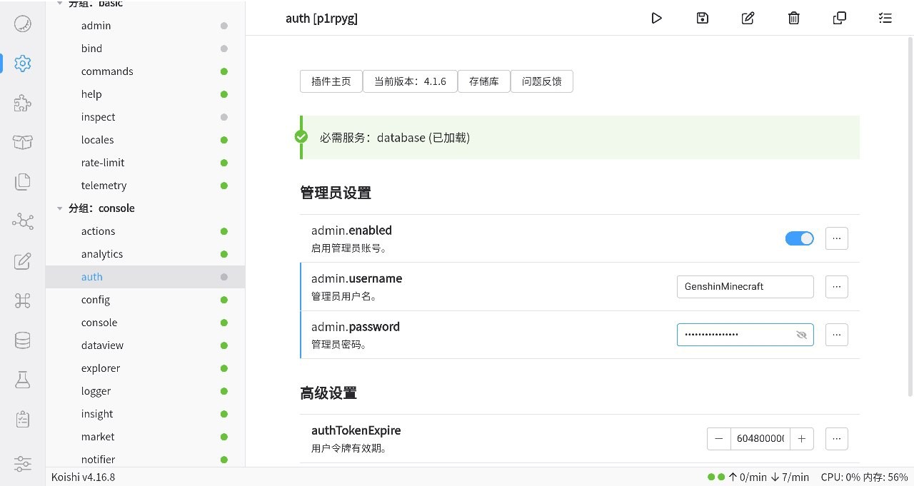 Koishi 默认公开到公网上,且无帐密,任何拥有你的 Koishi 访问链接的人都可以随意查看/更改你的设置,所以要设置帐号密码以保证安全