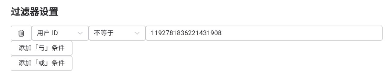 在过滤器设置中,最好设置一个 用户ID - 不等于 - [在 Discord 中获取的 自身ID]