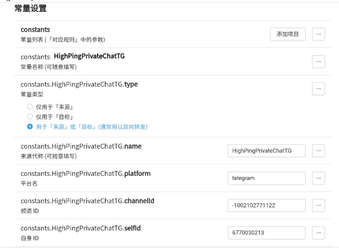 通过点击 constants 右侧的 添加项目 来配置,不知道如何填写的信息可以不填写,仅需要按照图中的信息配置即可