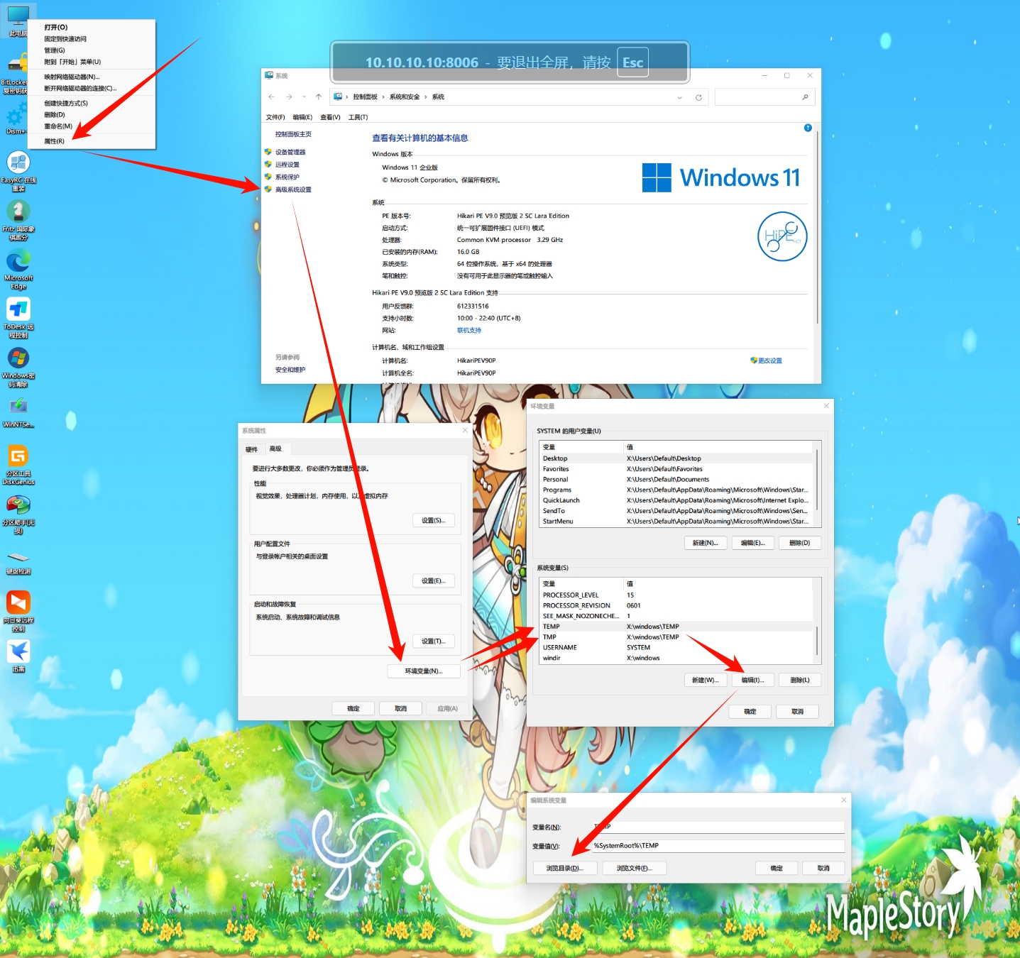 3:在新的U盘里新建两个文件夹(tmp和esd),然后修改PE环境变量,右键此电脑-高级系统设置-环境变量-找到tmp和temp两个-编辑变量-选择目录,将它们都修改为刚才新建的那个tmp目录。