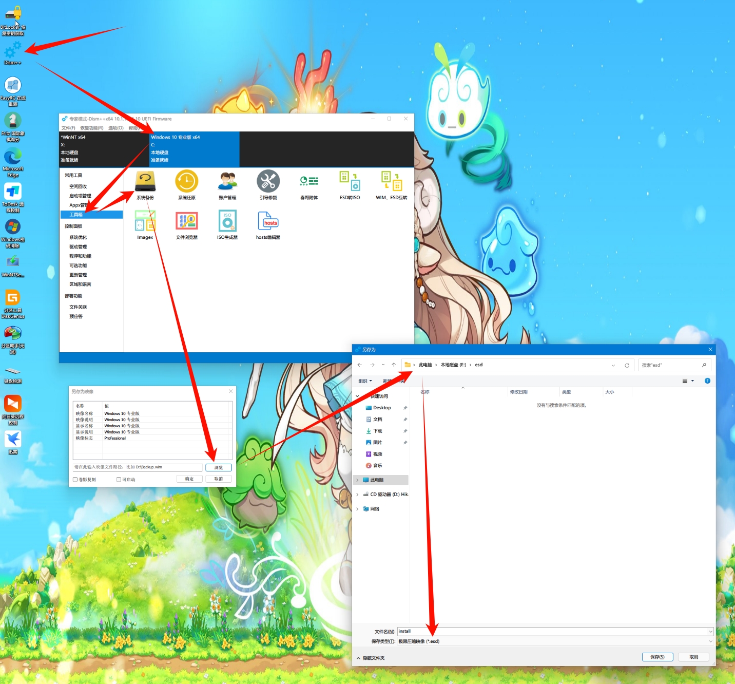 4:打开dism 选择装了系统的硬盘-工具箱-系统备份-浏览-选择刚才新建的esd文件夹,保存类型选极限压缩映像(.esd),文件名必须是install(有空再改名也行),不需要勾 卷影复制 和 可启动。