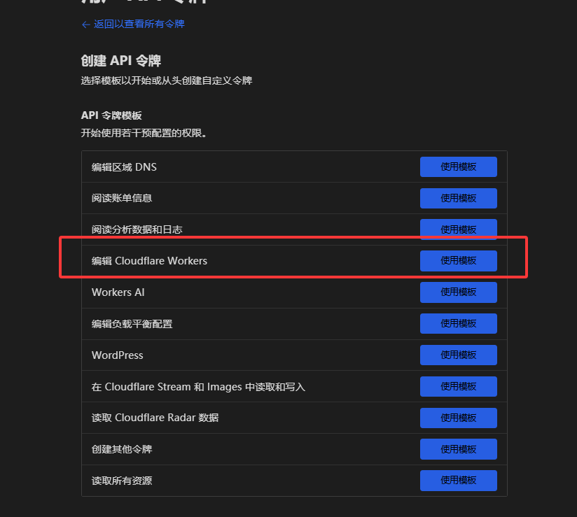 - 生成Api令牌,使用Cloudflare Workers模板