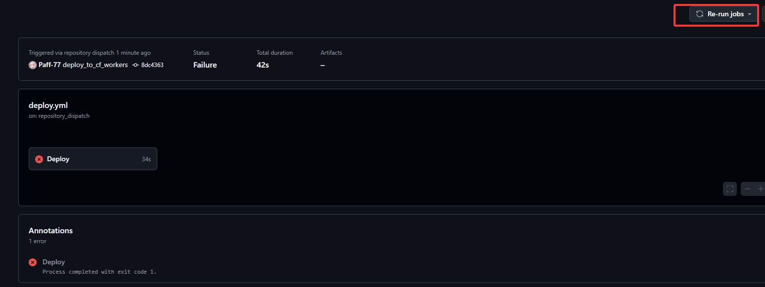 - 第一次应该会失败?重新Re-run all jobs后就部署成功了(也许要三次?)