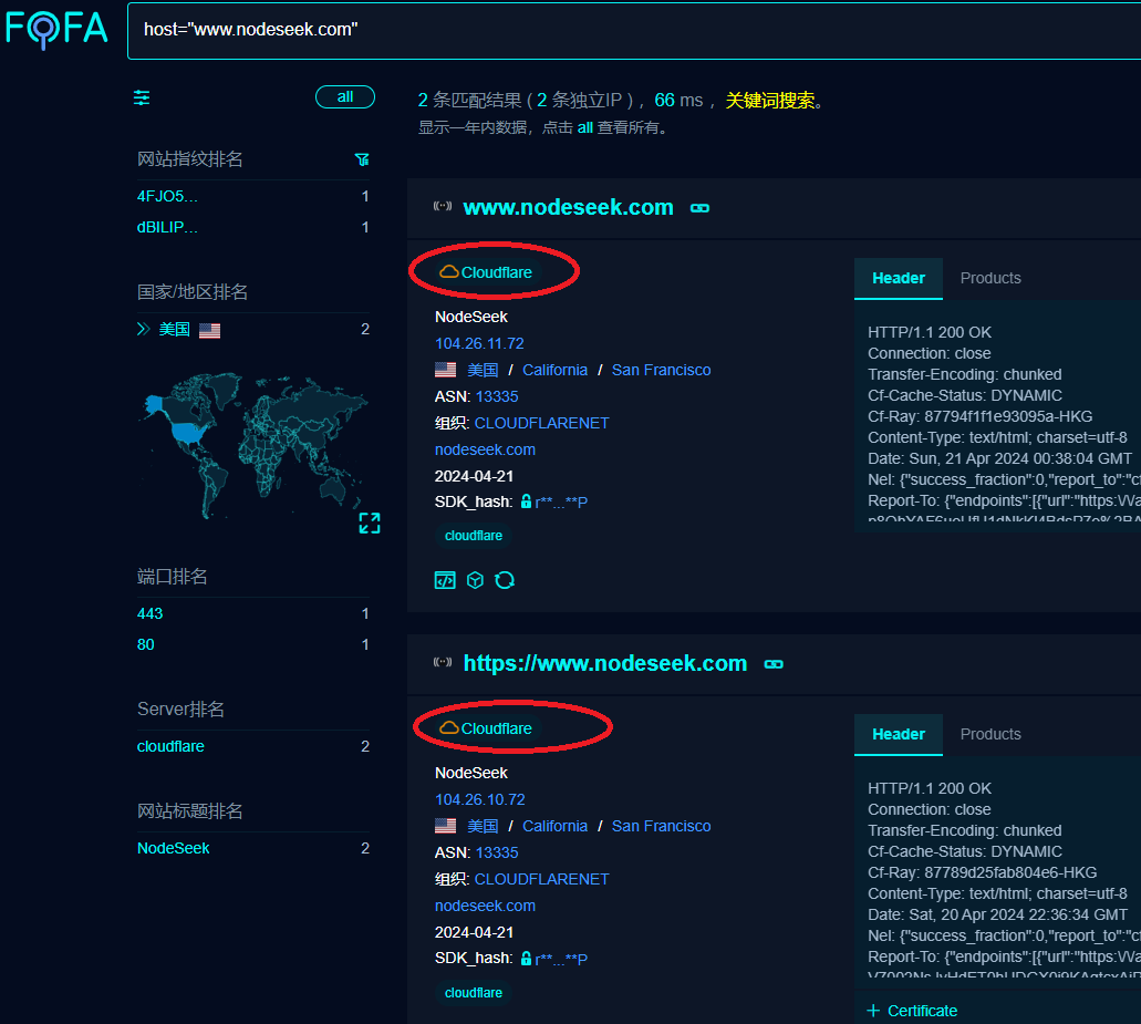 如何变成普通特征,最简单的方式就是加盾,比如Cloudflare,以我们的NodeSeek为例,试了几个icon图标都没有数据,如图:
