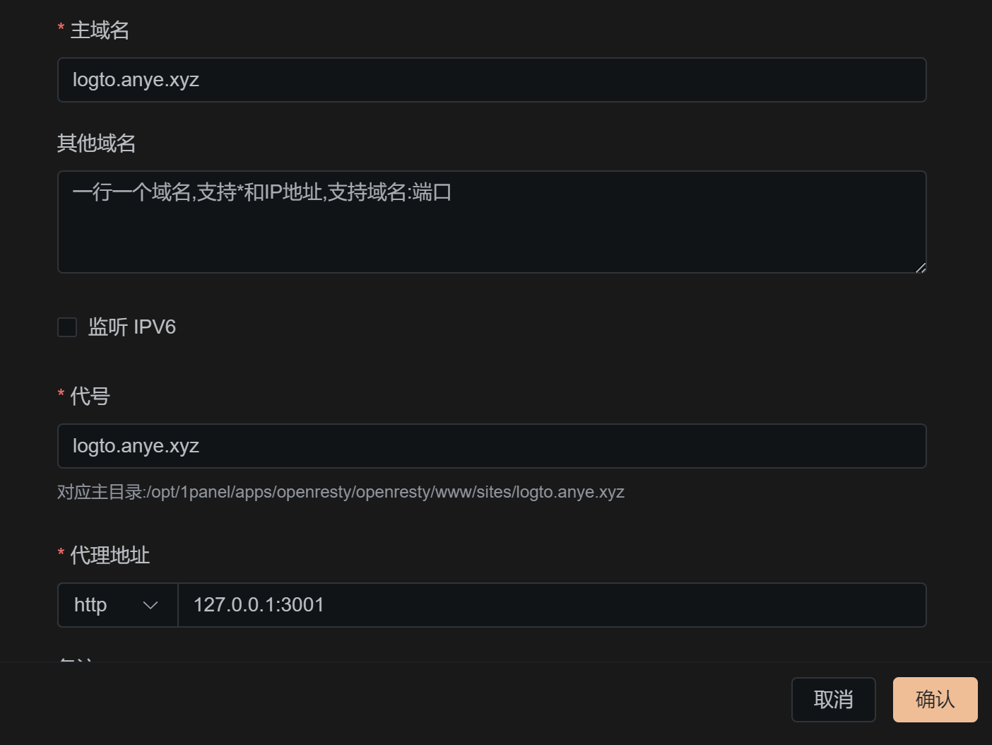 注意:这里填写的域名必须是后面反代正式使用的域名,且必须启用 HTTPS 。