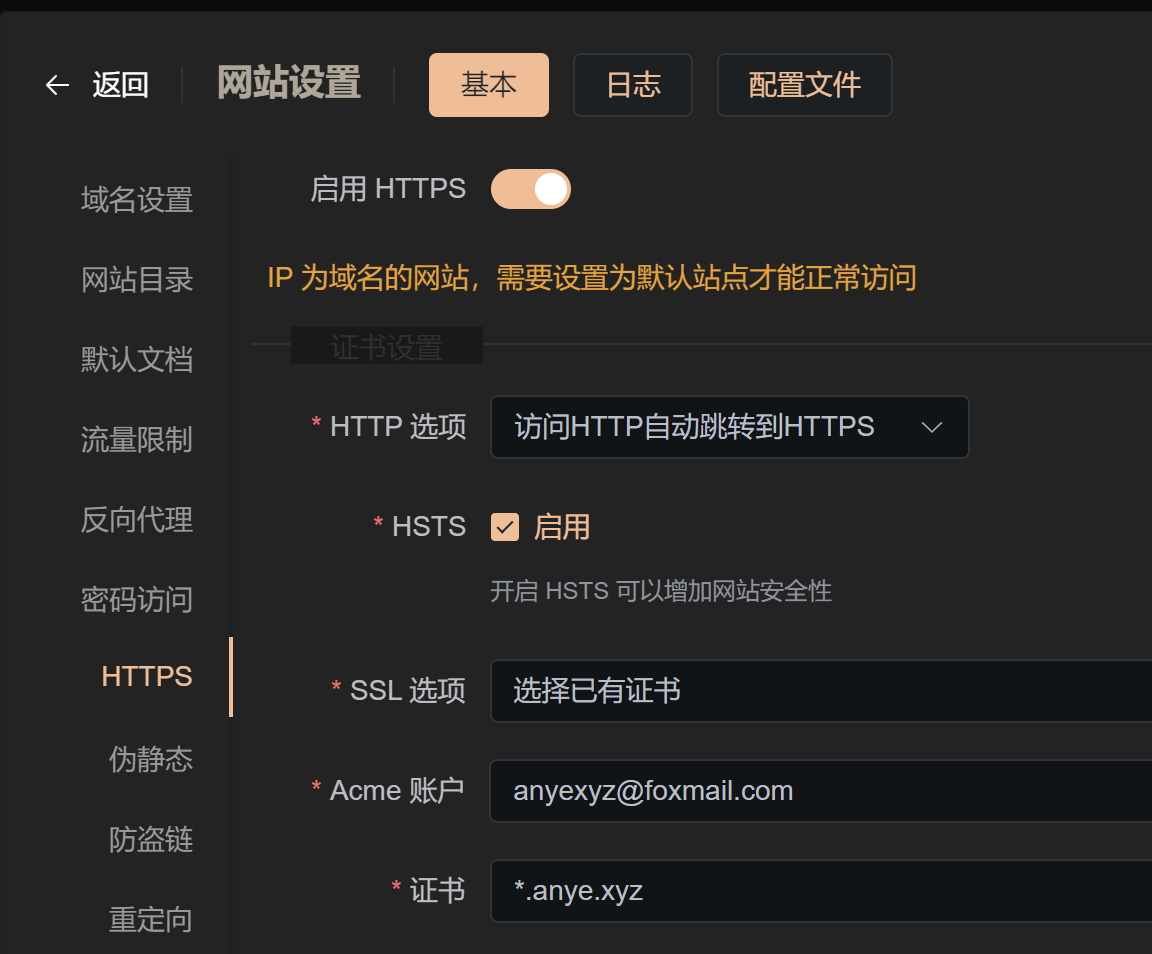 均需要在站点配置中开启 HTTPS。