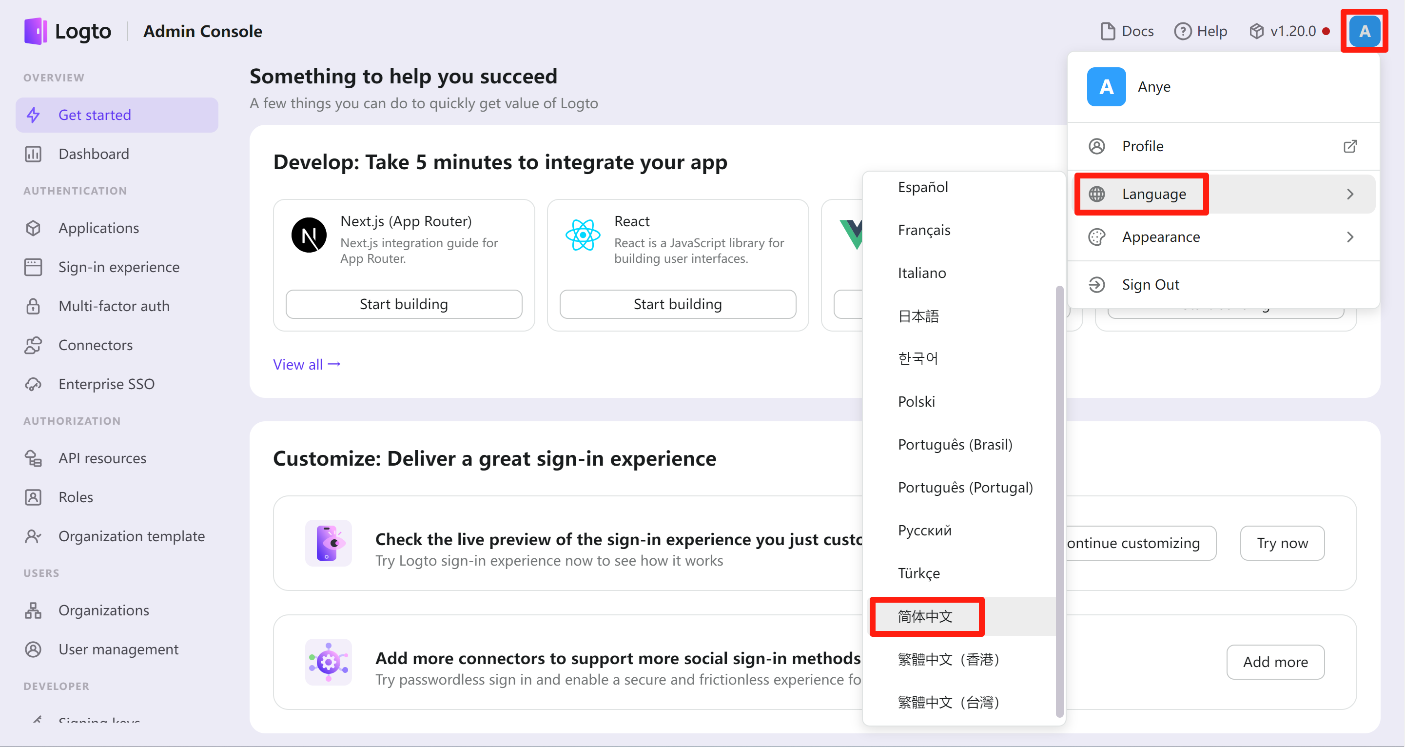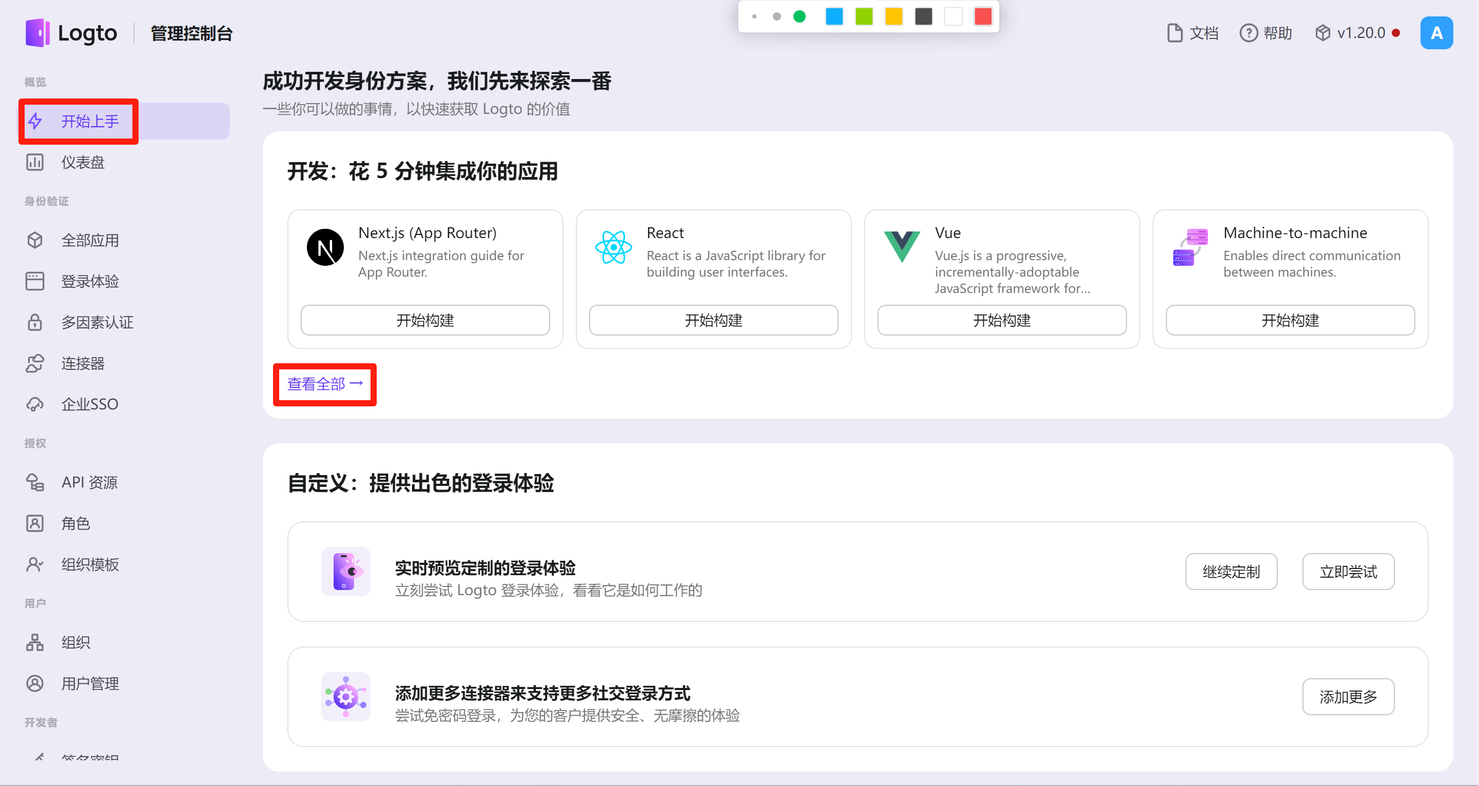 Logto 管理页面