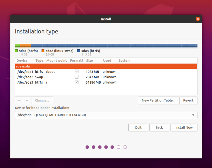 1 > /dev/sda3 31.3 GB btrfs