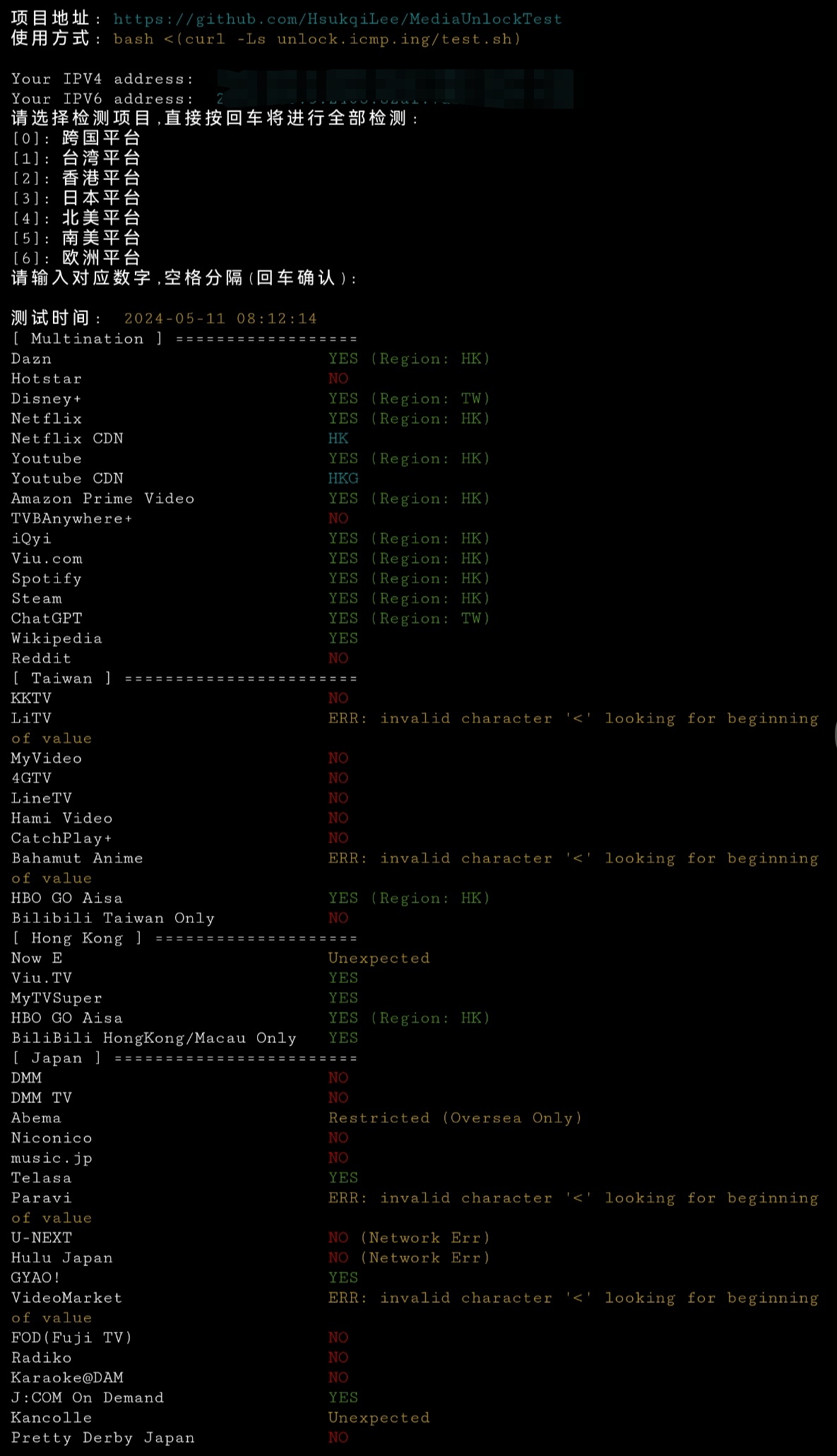 本项目基于 MediaUnlockTest 二次开发,提供更丰富的测试项目。