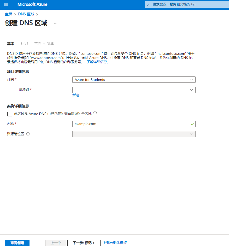 AZ100学生包里除了能使用免费VM,还能使用Azure DNS。