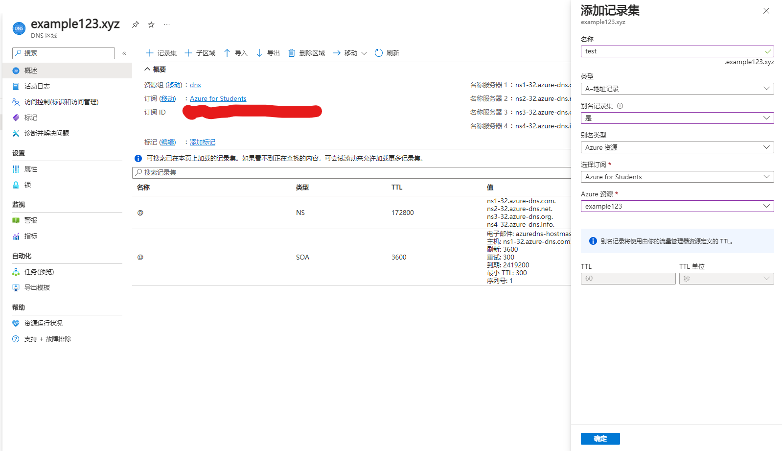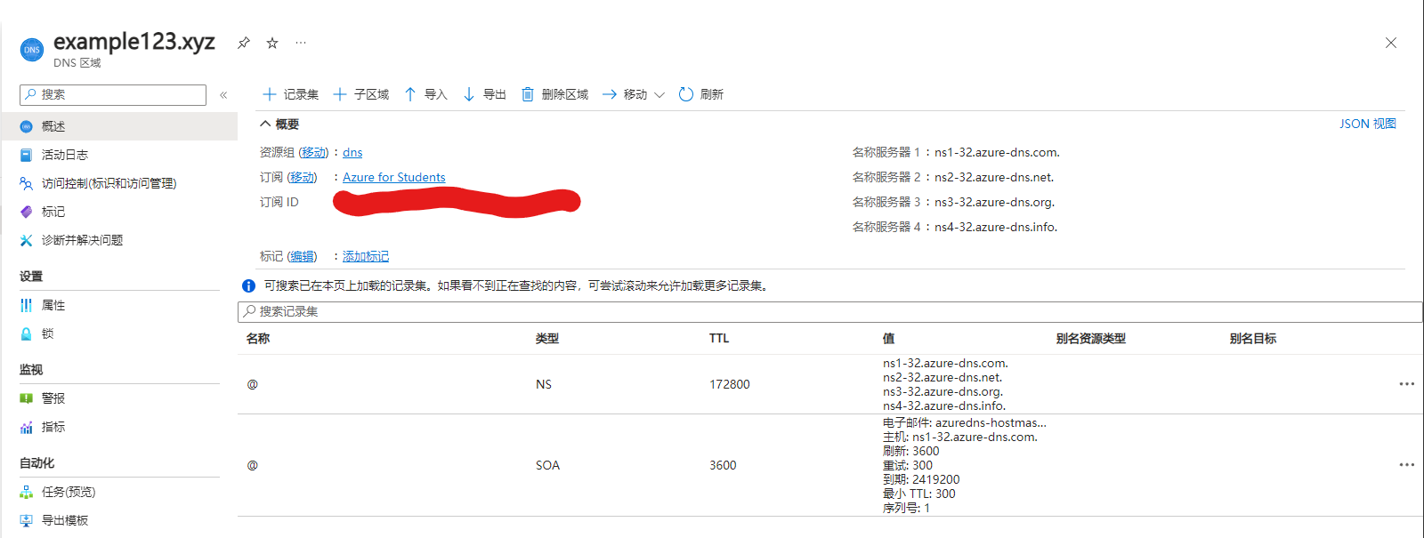 到这里,最基本的Azure DNS服务就已经配置好并可以使用了。