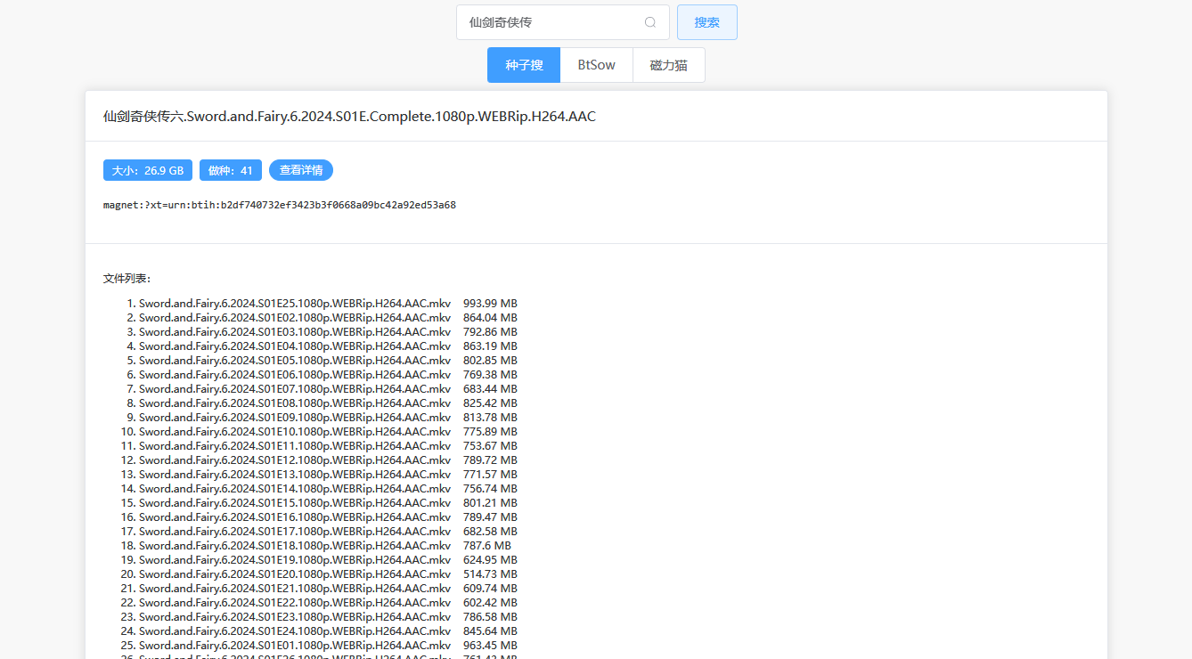 写了一个磁力搜索工具,欢迎来体验,支持文件详情和预览图 2024年3月31日 3条评论 8次阅读 0人点赞 Tao_Qi 介绍 采用 Vue3 Flask,前后端分离。 功能: 获取磁力的基本信息,如名称、磁力链接、大小、做种人数。 获取磁力文件内容。 获取磁力文件的预览图。 多种搜索源,后续会添加。 地址:bt.pyth.onl 效果图 本作品采用 知识共享署名-相同方式共享 4.0 国际许可协议 进行许可 < 上一篇 下一篇 > relaybtsvu说道: 2024年3月31日 下午4:19 之前写了个爬到后面服务器配置要求越来越高然后直接跑不动了,项目直接破产 回复 TIM说道: 2024年3月31日 下午4:27 @relaybtsvu #1 硬盘占用高吗还是什么 回复 skyqian说道: 2024年3月31日 下午4:40 @relaybtsvu #1 展开说说呢 回复 发表回复 取消回复电子邮件地址不会被公开。必填项已用 * 标注* * *