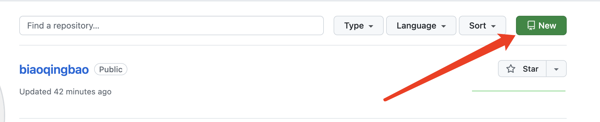 登录你的github账户,创建一个公开库,库名无所谓,比如biaoqingbao