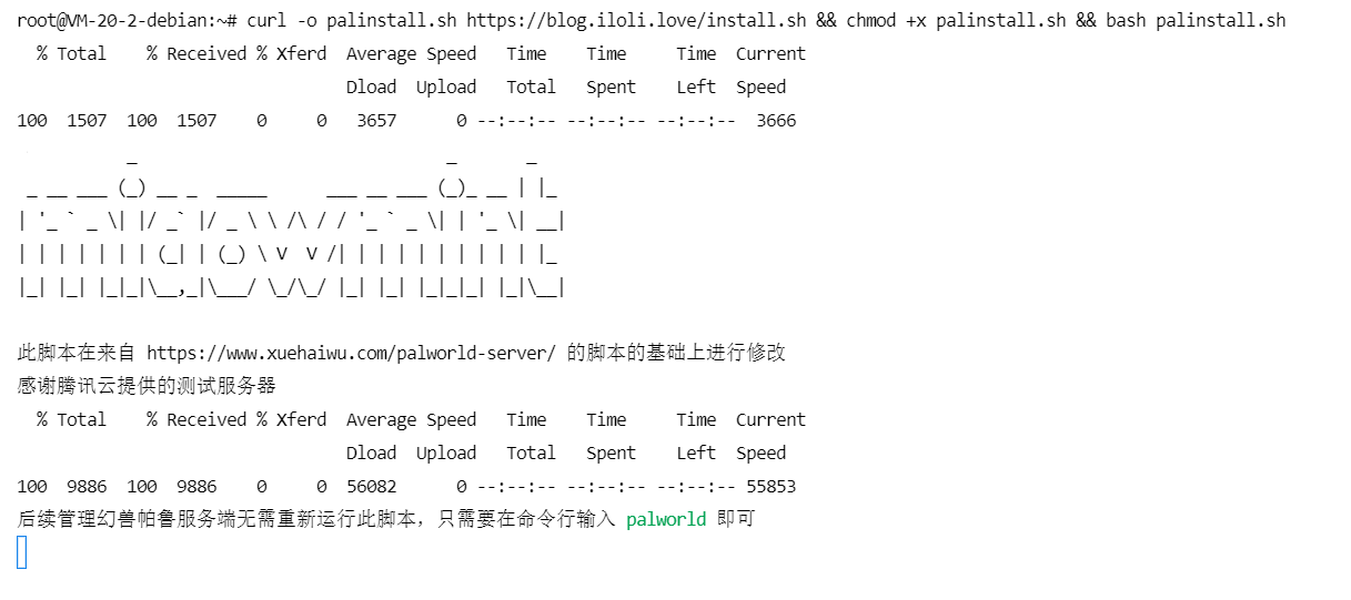 curl -o palinstall.sh https://blog.iloli.love/install.sh && chmod x palinstall.sh && bash palinstall.sh`