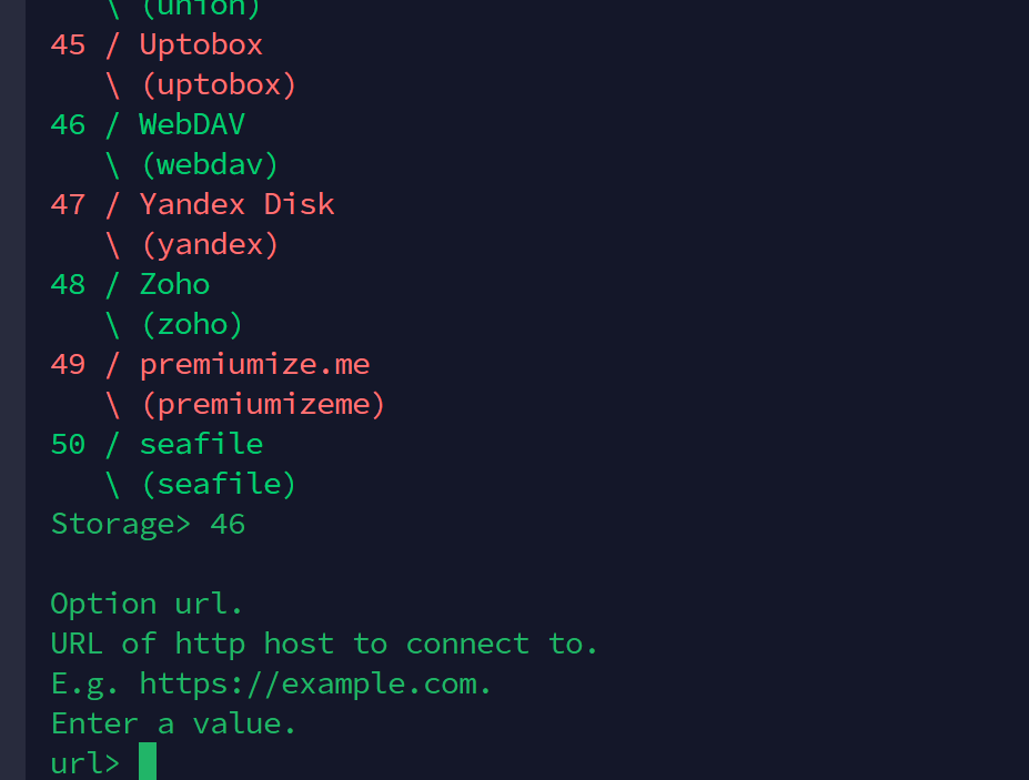 ③这个infini-cloud的话我们挂载的是webdav的,选择46 webdav,输入46就行了