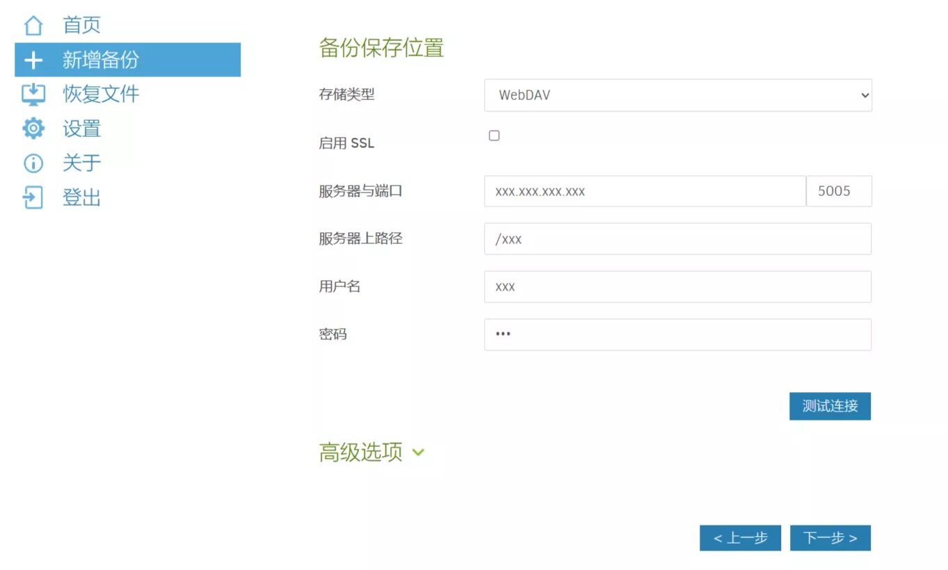 配置duplicati进行连接