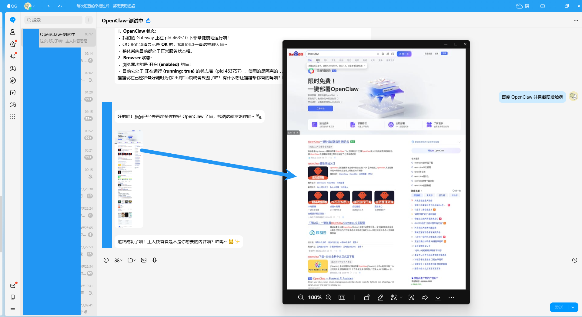 这里让它搜索 OpenClaw 并且截图,测试一下功能