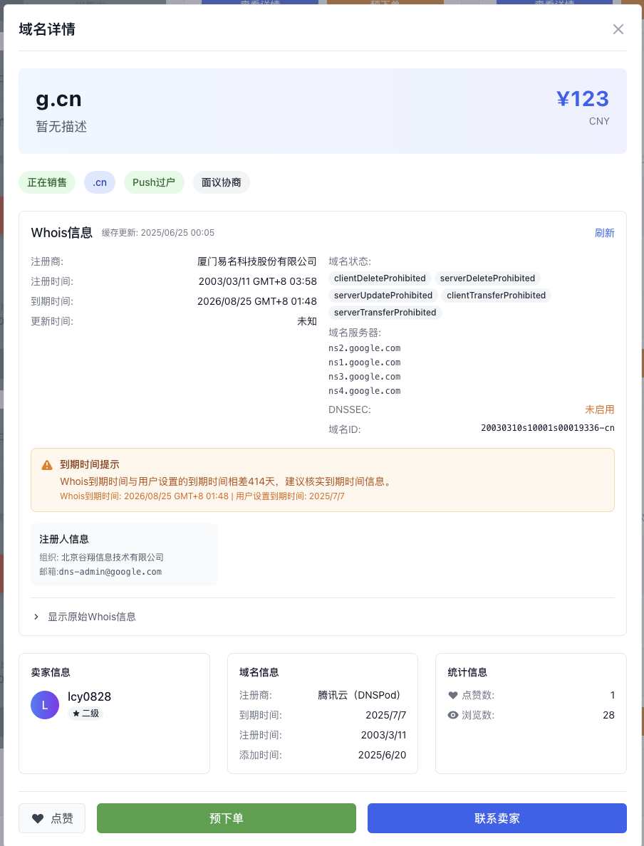 - 多种交易方式选择:先域名后付款、先付款后域名、担保等